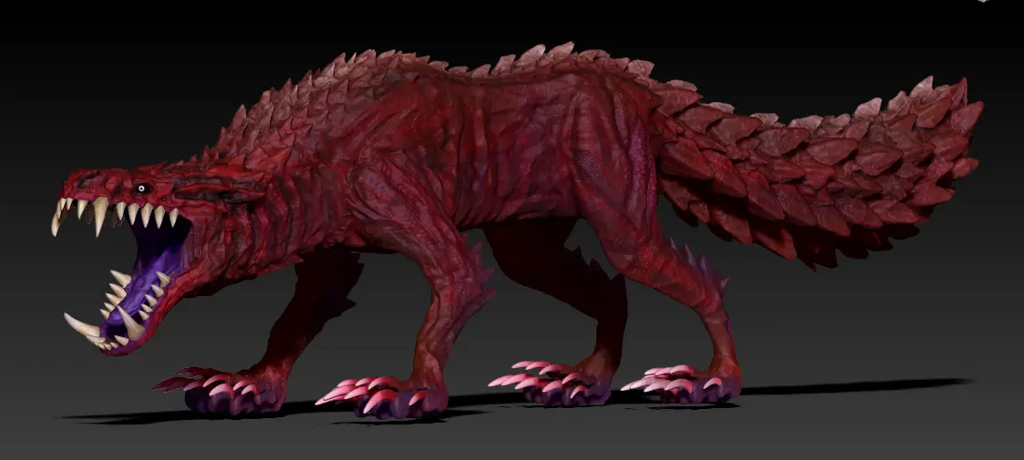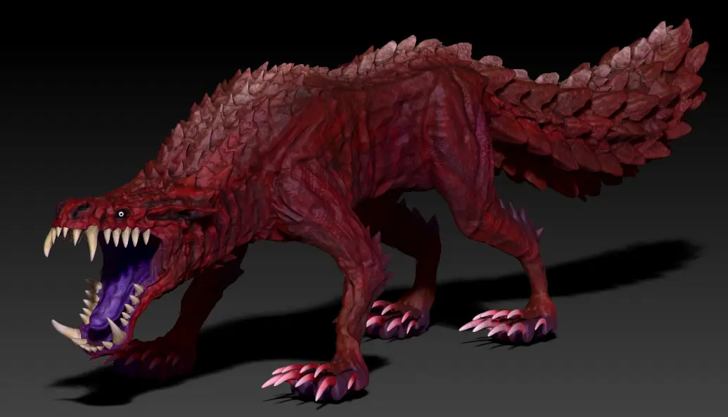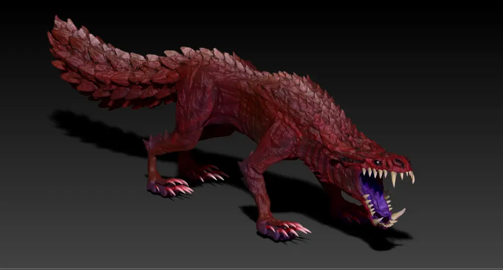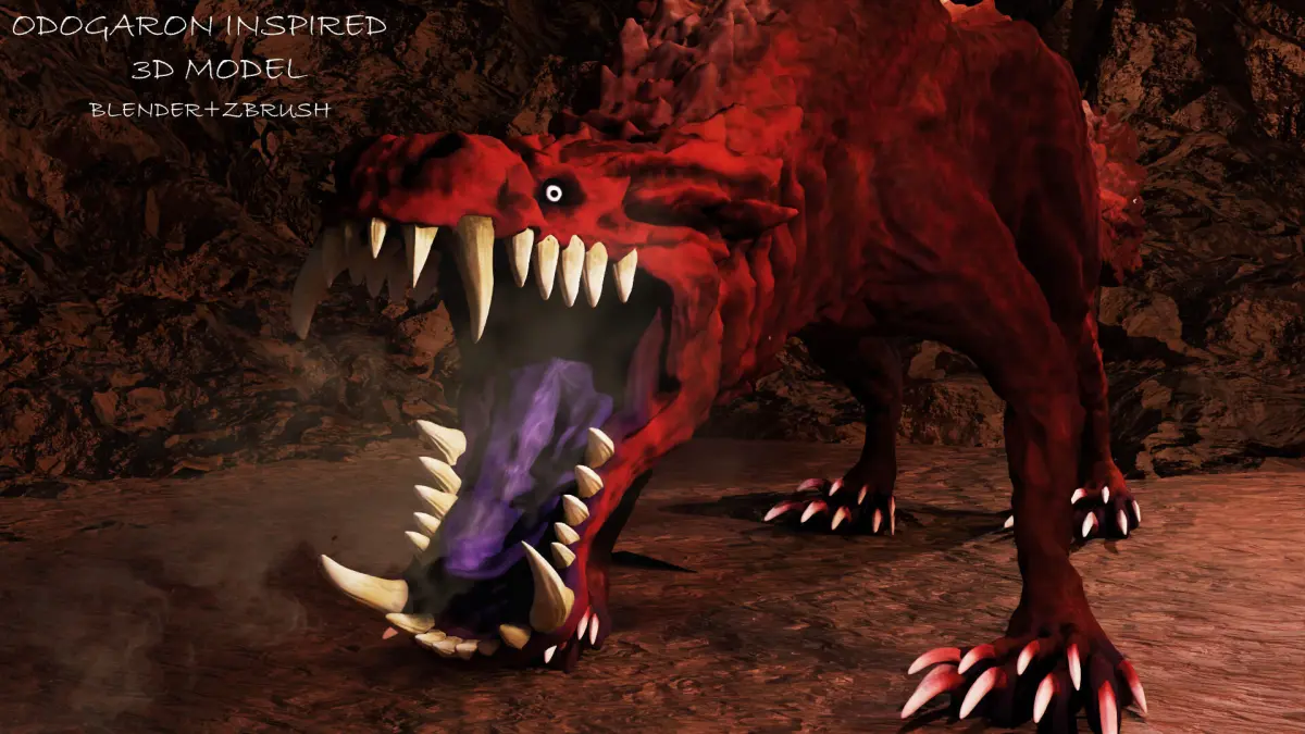 The model captures the beast’s signature jagged carapace, menacing fangs, and iconic crimson hide, complete with intricate skin texturing and realistic material rendering.