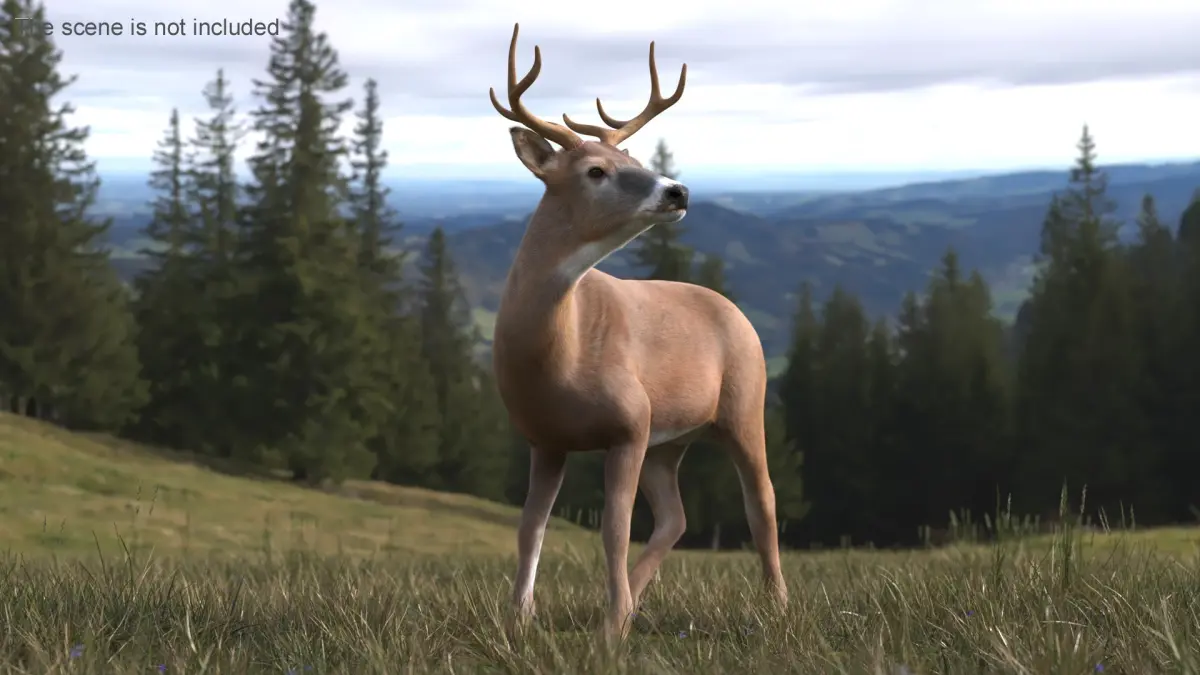 Odocoileus Virginianus Standing Pose Fur for Cinema 4D is a three-dimensional model of white-tailed deer (Odocoileus virginianus, whitetail or Virginia deer), that is a medium-sized species of deer native to North, Central and South America.