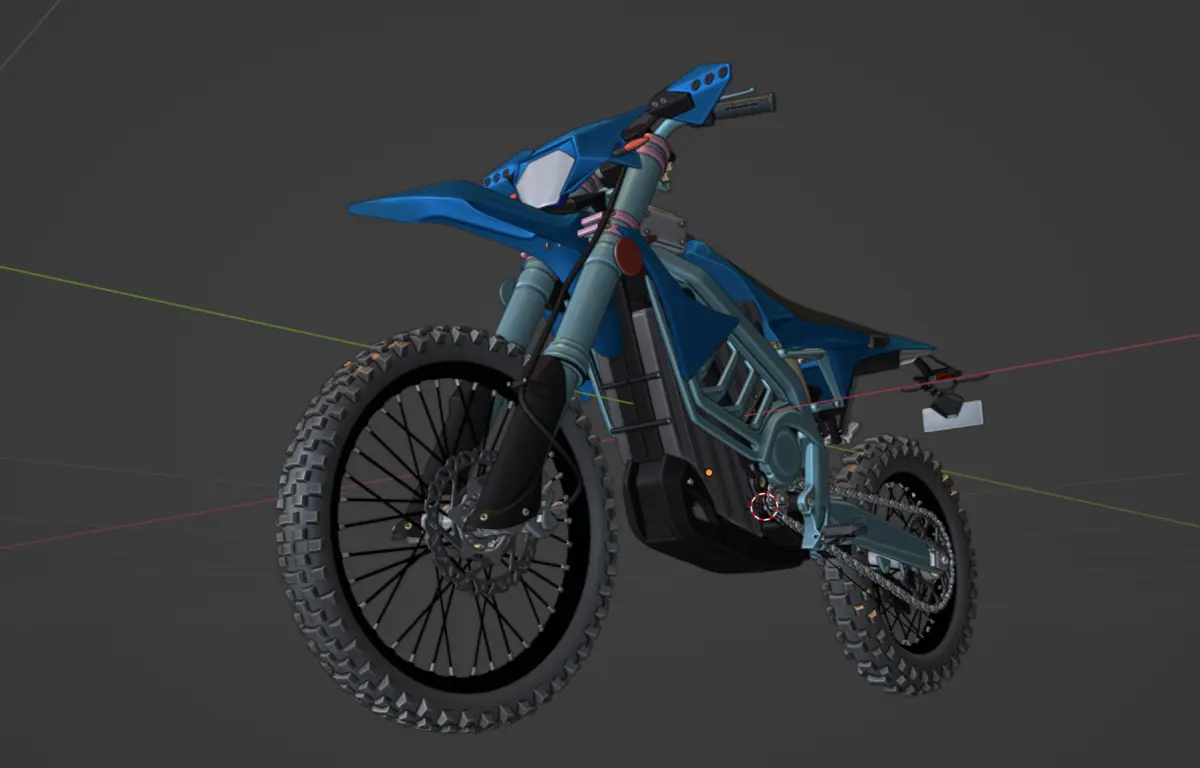 highly detailed, custom off-road bike model created in Blender. This free download features simple materials and is perfect for 3D artists, designers, and enthusiasts.