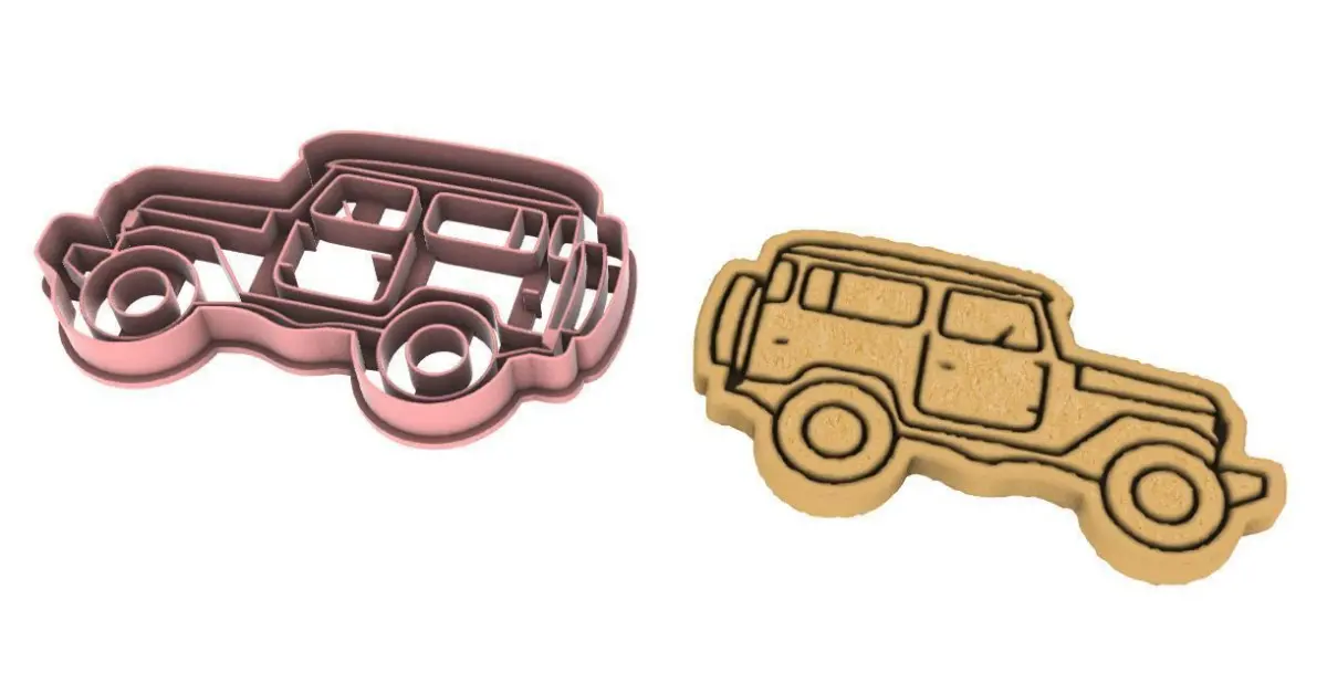 Project was 3d printed and tested (watch pictures). Dimensions: 64 x 112 x 12 mm. Formats included: stl, obj, skp, 3ds, 3dm Additional: picture of manufactured cookie cutter with a formed dough, picture of baked cookie, render of 3d model with render of a formed dough (textured).