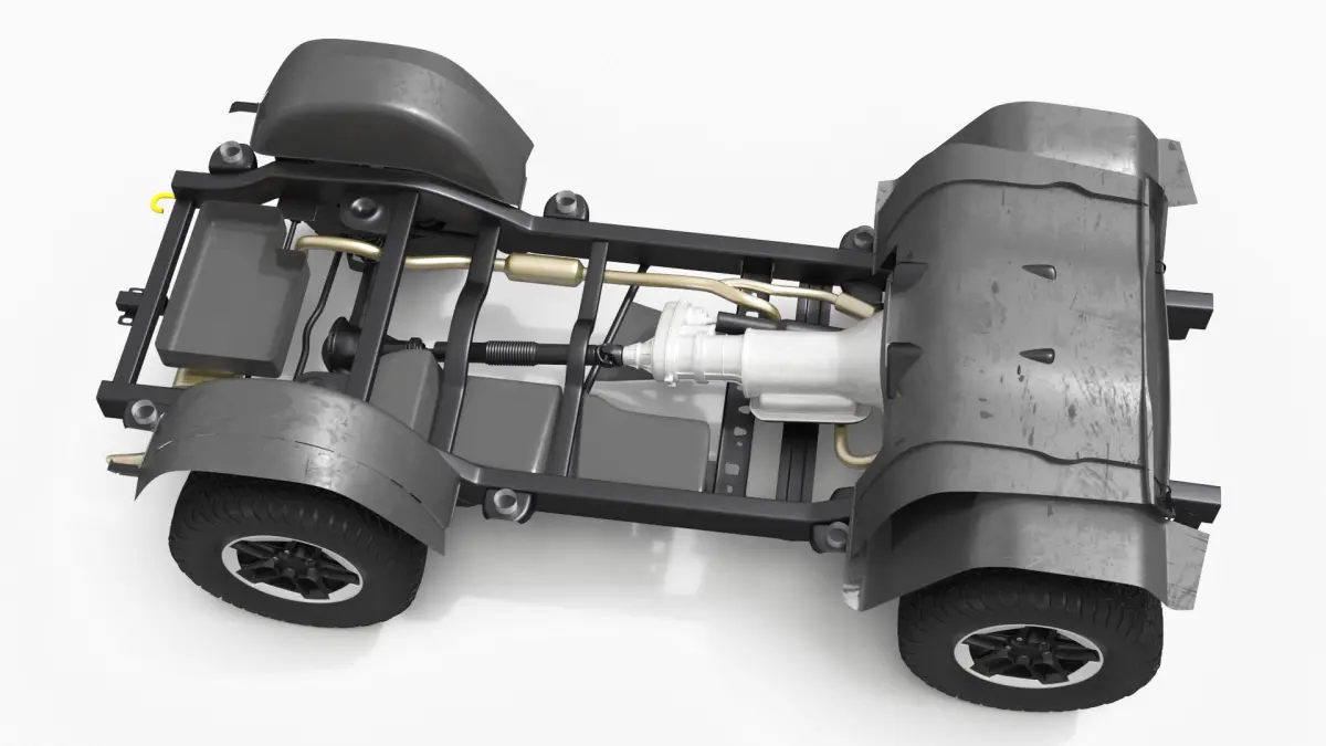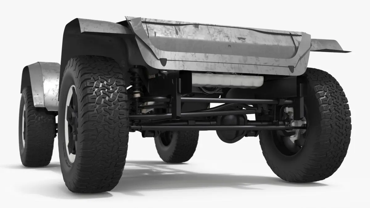 Off-Road Vehicle 4x4 Chassis Rigged is a three-dimensional model of component of vehicle that is a tough terrain trip van transport.