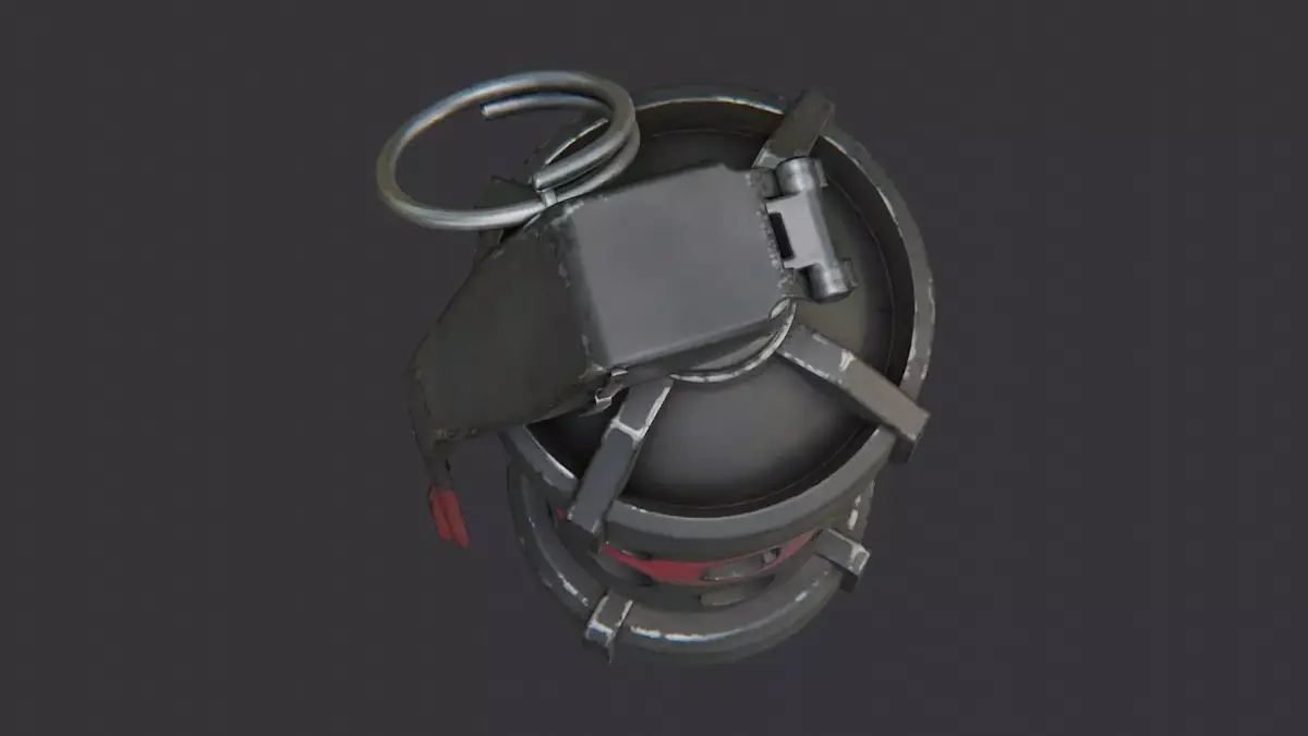 Compact offhand grenade sequencer prop with a dark metallic body and cutout lattice. The model uses a single realistic material for a believable battle-ready finish. Great for film, game assets, or dioramas and tabletop displays. Durable, printable UVs and clean topology for easy texturing.
