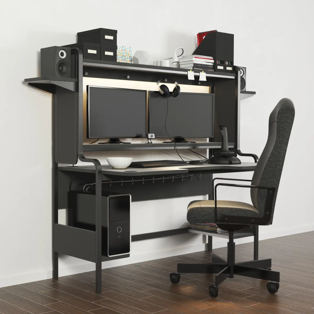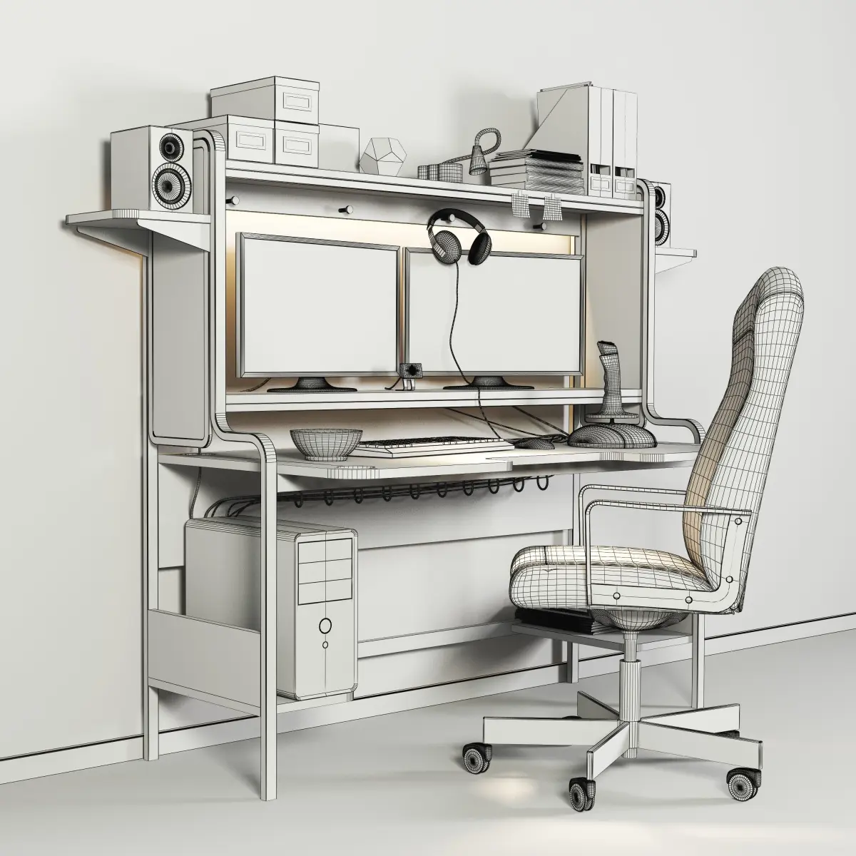 In the archive there are all the objects that are presented in the preview. As there are all teksutry, materials and obekt files. All elements of decor can be purchased at the online store or on the site ofThis set is perfect for both office and also for a game room or a nursery)excellent rendering* there is no plinth and parquet in the archive