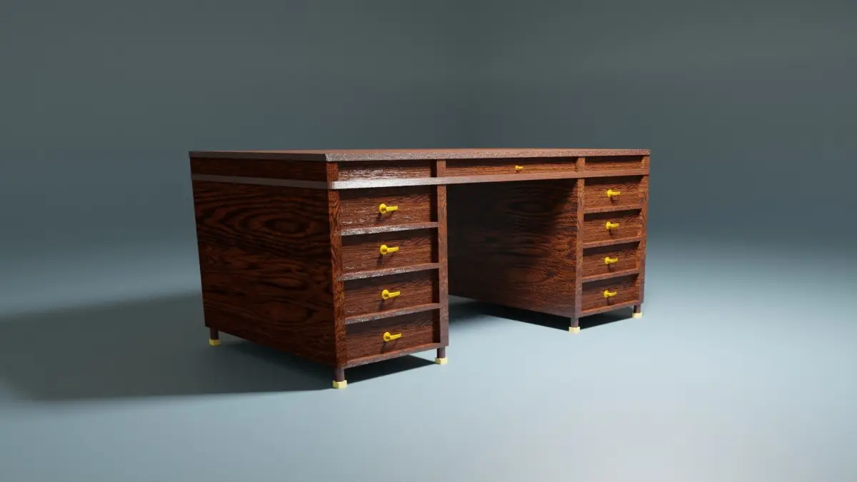 this is a Office 3d design Contains a new wooden material with 8 drawers has the hookone meter in lengtha meter and a half in width