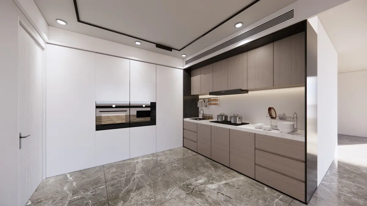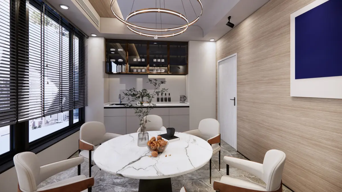 This 3D model is a office and kitchen.This file designed : sketchup 2021 with Enscape3.0.full material and render setting - render exactly like preview. You need sketchup 2021 and Enscape3.0 to render like preview.