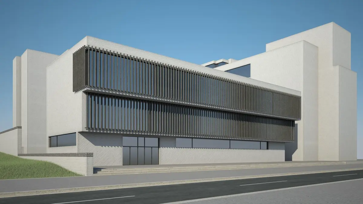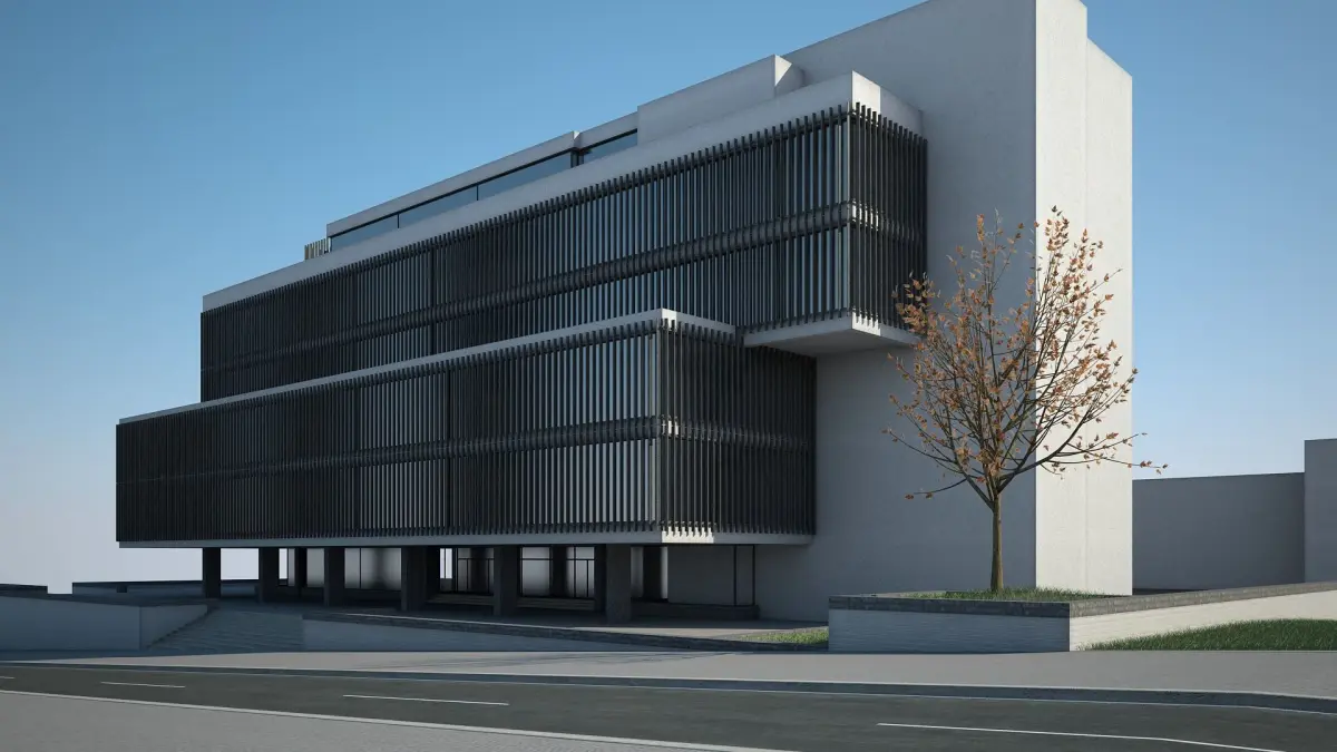 Detailed 3D model of an urban office building. Suitable for high resolution close-up. Real world scale.