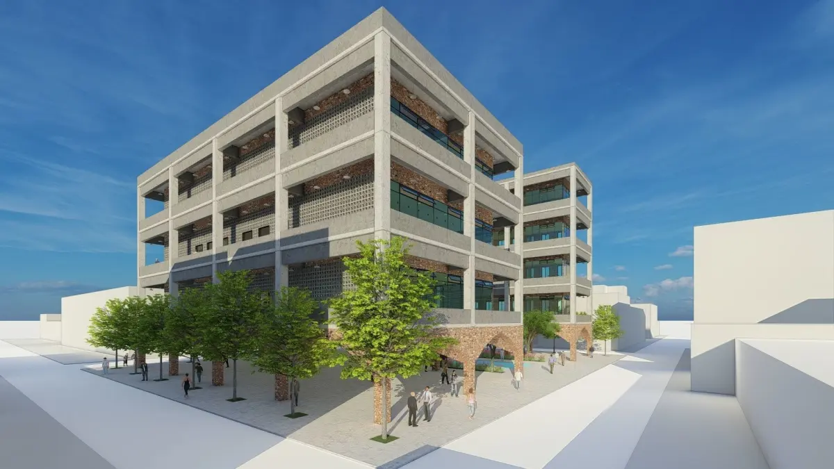This building was designed with eco friendly perspective: Natural ventilation and lighting, free for circulation ground level, includes various forms of vertical circulation plus a terrace filled with planting that also offers a calm space for the user