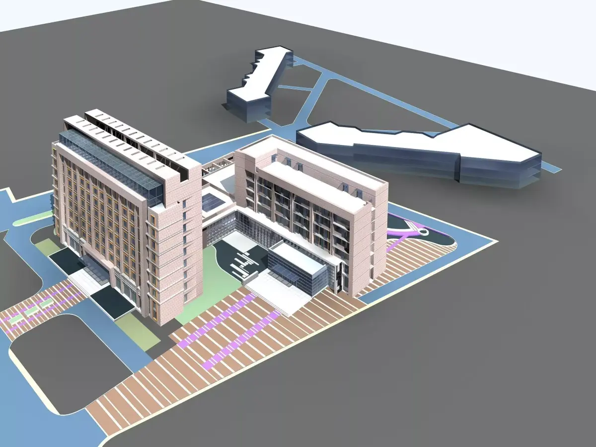 3D model of a modern building.