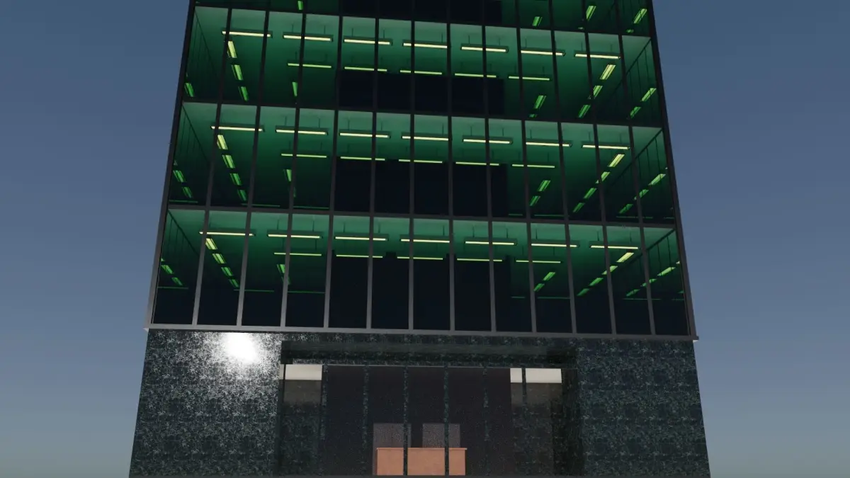 As internal accessories, you can find the elevator, the floors are illuminated up to the 4th floor. The building has 14 floors which can be added or removed.