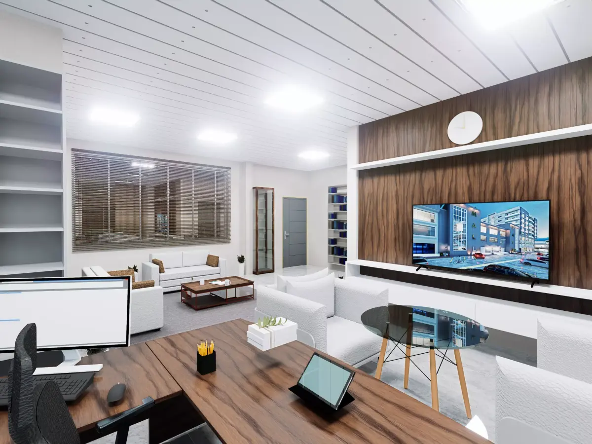 - Facade design + materials + realistic lighting setup