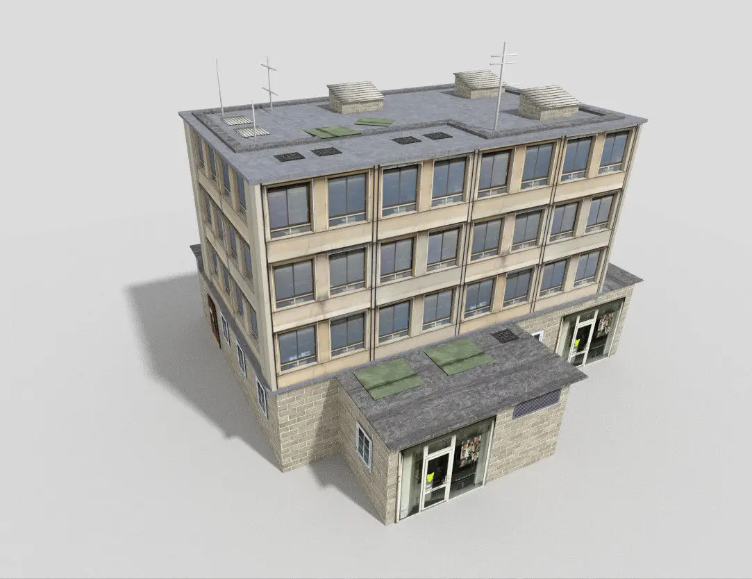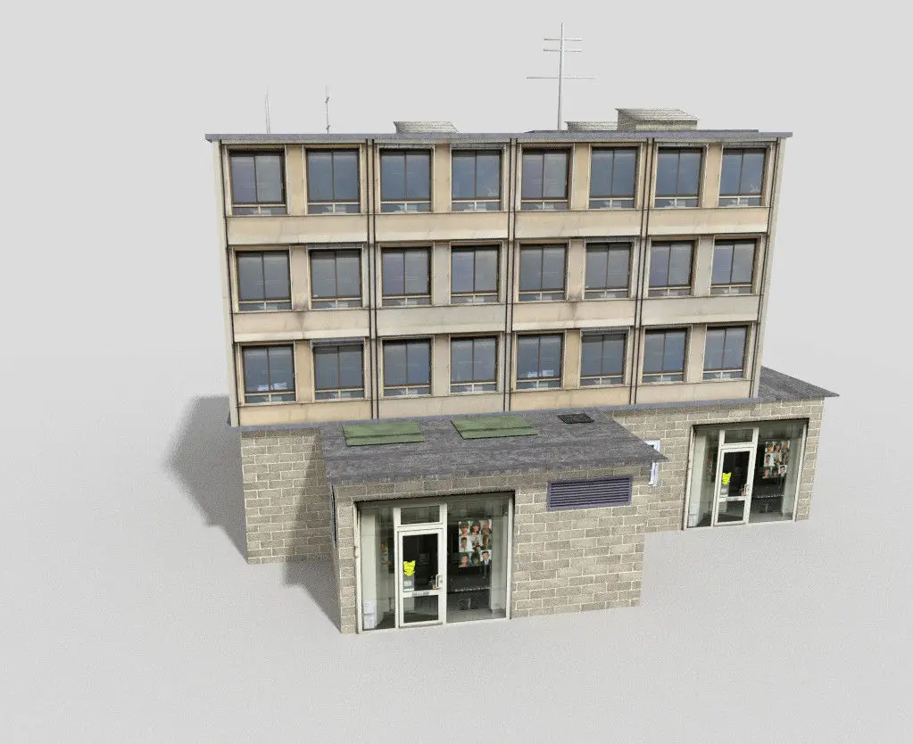 3d model of office building, fully textured and unwrapped.