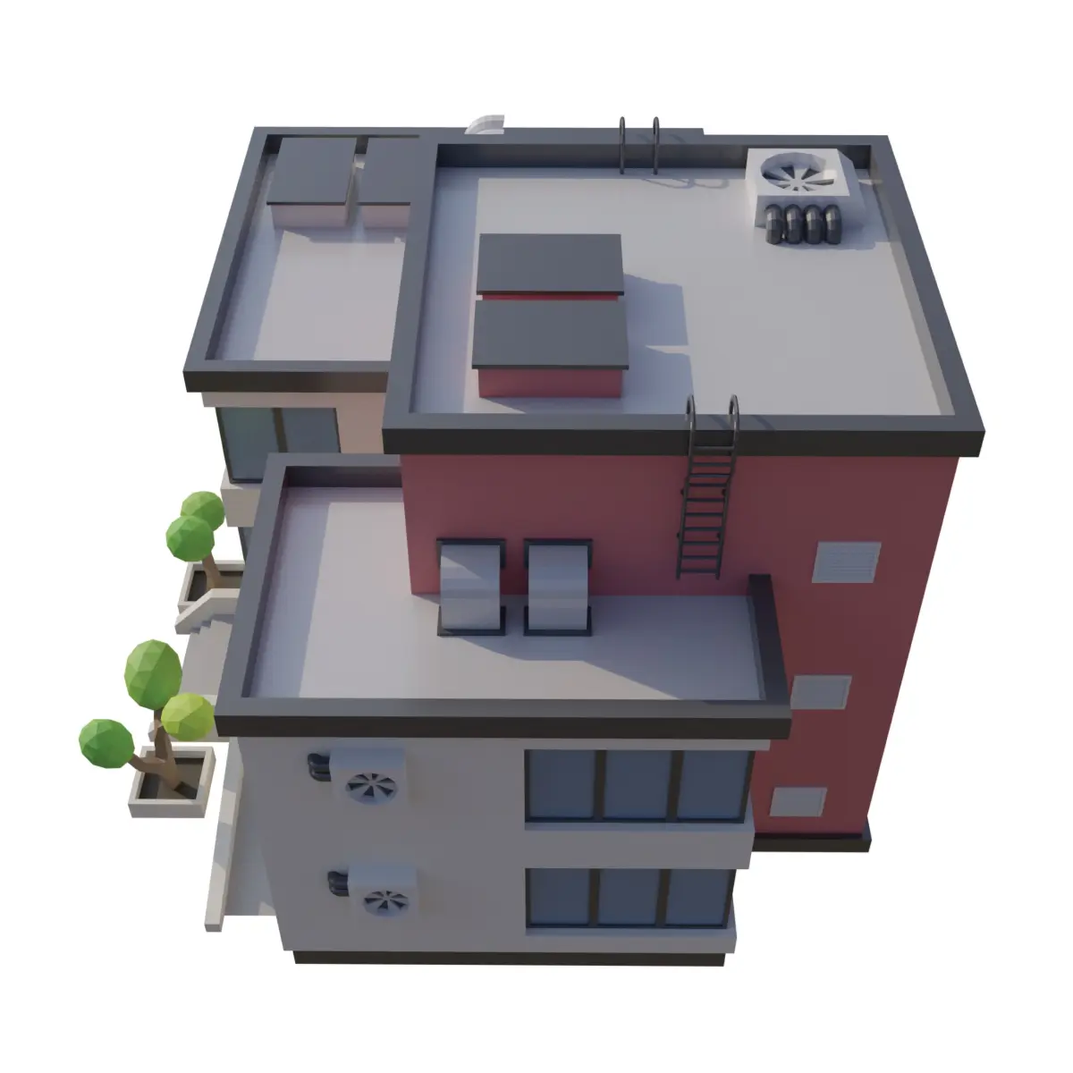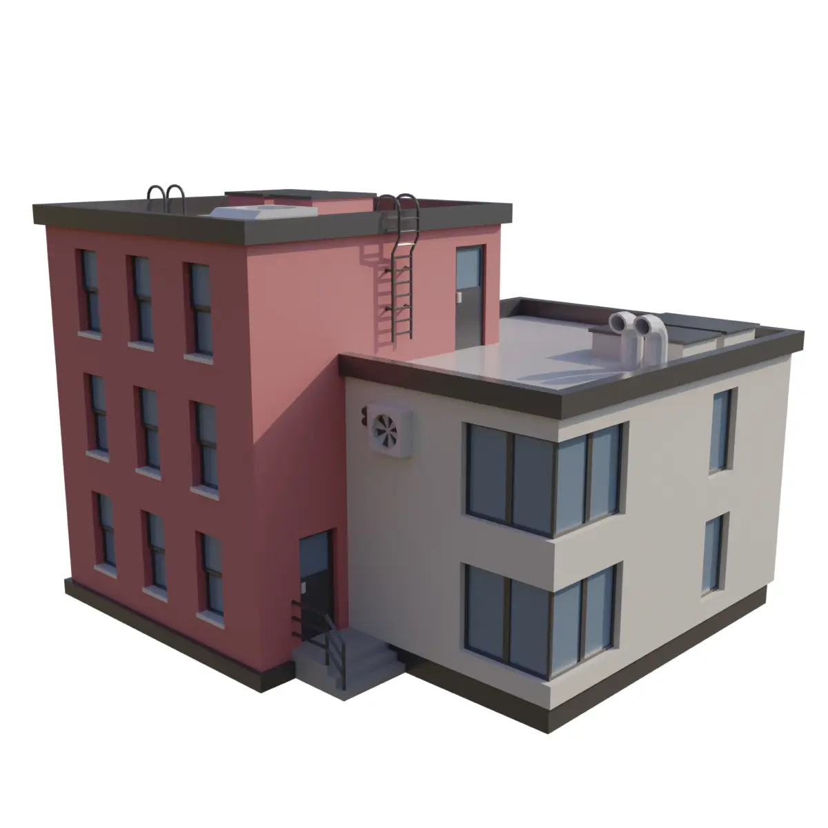 Low Poly mesh with 2 simple color textures(office color 1, office color 2).