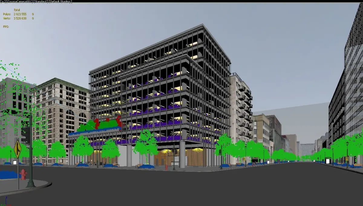 This is a fully textured exterior daylight scene of a city street with the focus on a Office building, ready to render with Corona for 3d Max. Ready for close-ups