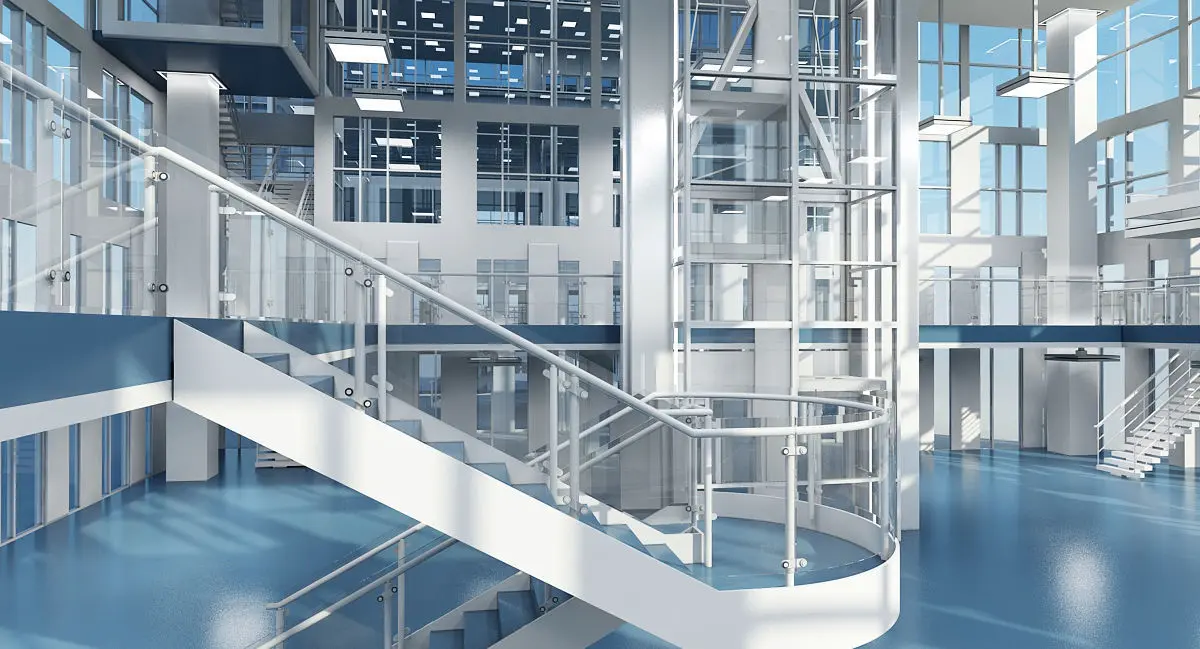 Extremely detailed generic office building structure.Both exterior and interior spaces have been meticulously detailed and set up for easy customization.