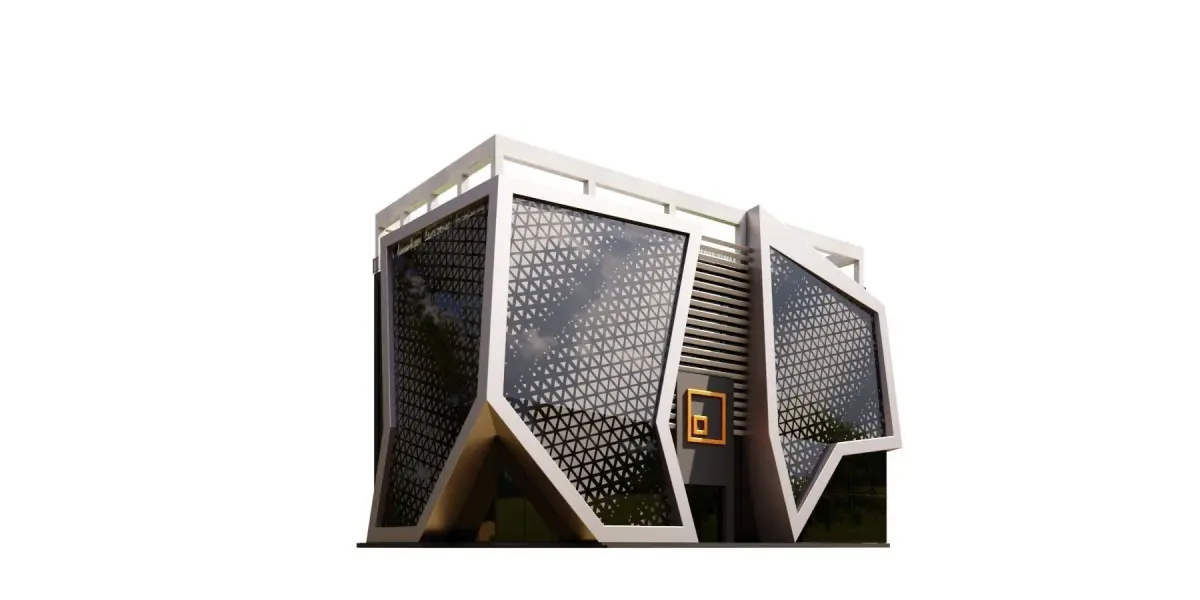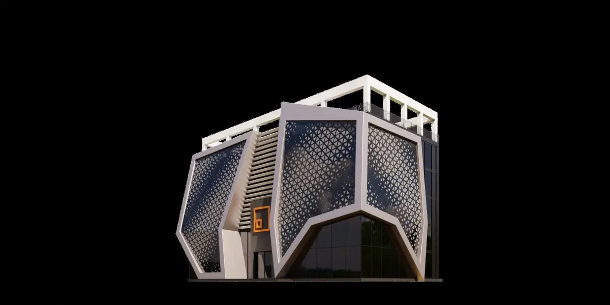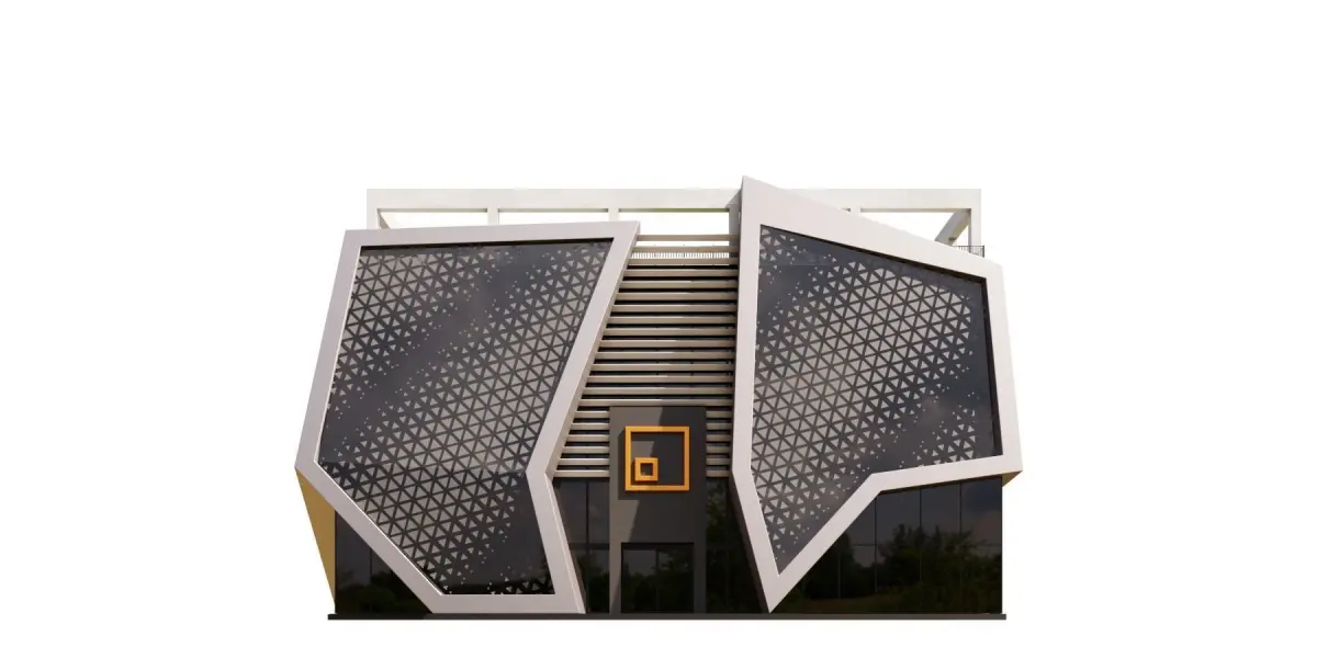 Modern building with a unique design, consisting of multiple glass windows and a white facade. The building appears to be a large structure with a prominent glass wall, which adds to its contemporary and stylish appearance. The windows are arranged in various shapes and sizes, creating a visually appealing and interesting architectural design. The building's overall shape and structure give it a distinctive and eye-catching look.