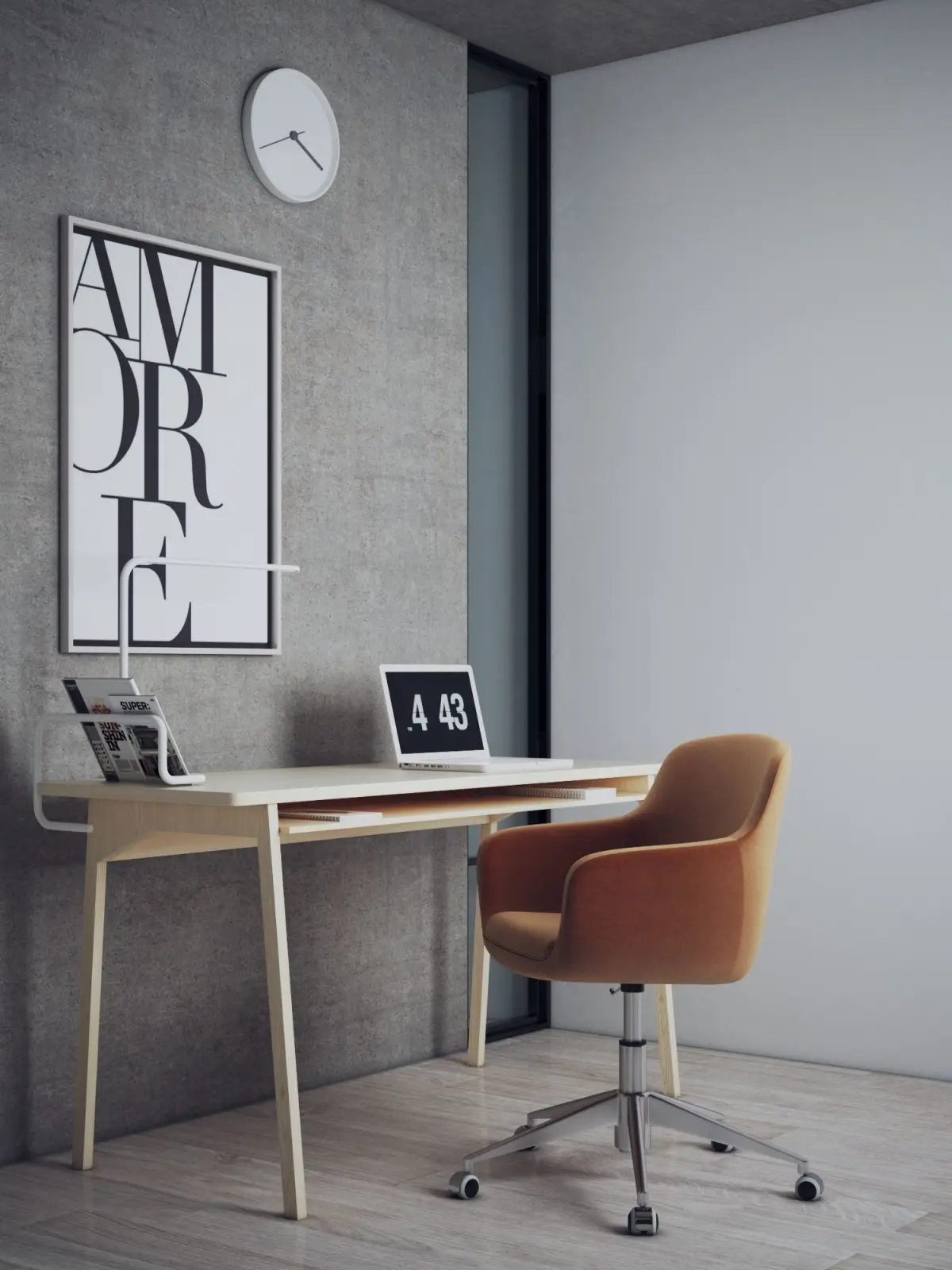 3D model of a well known office chair design with a steel base and leather finish. Modelled with close detail on leather seam in 3Ds Max and rendered with V-ray materials.