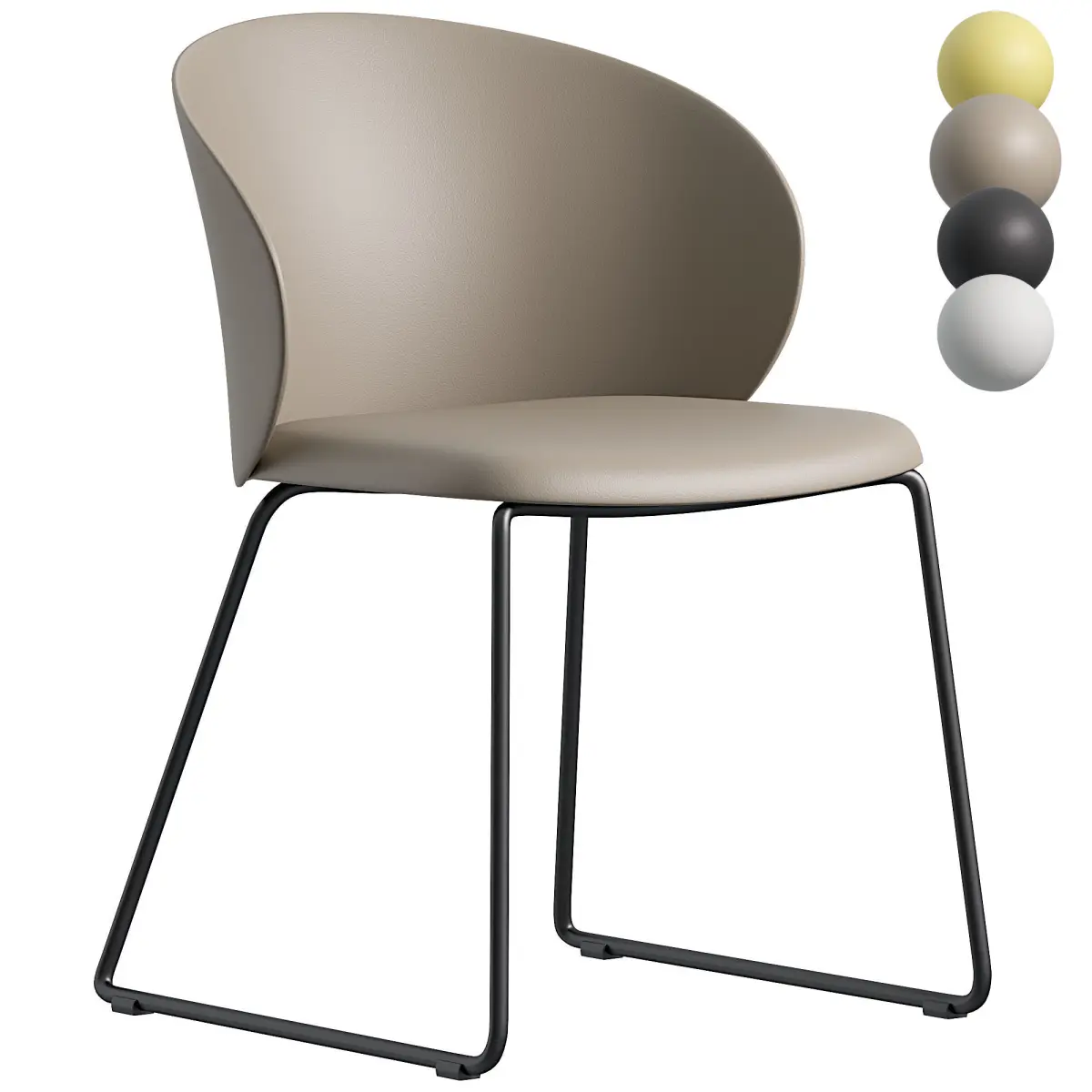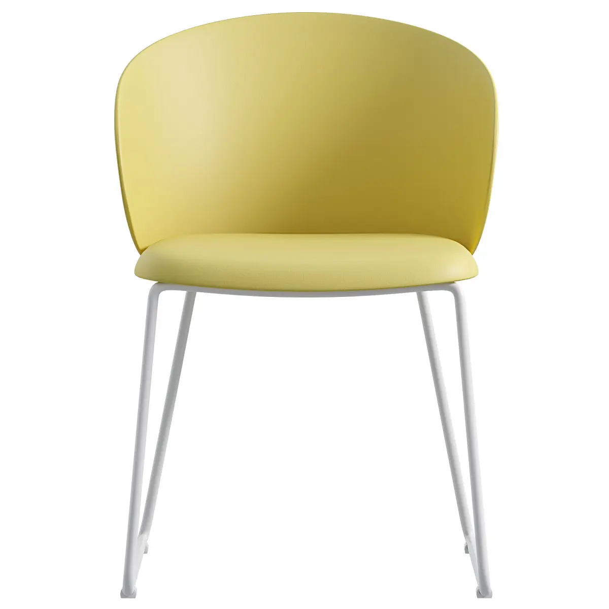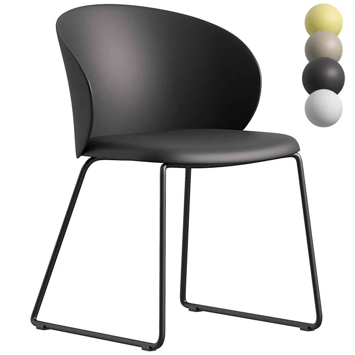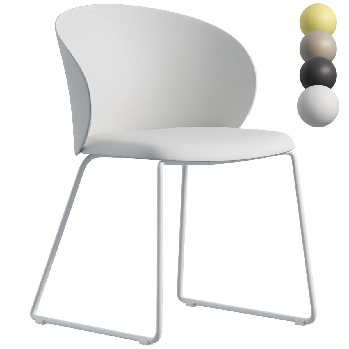 The Tuka Sled Base Chair features a modern silhouette with a curved barrel back. A tubular metal sled base supports the polypropylene seat for a light, contemporary look. Chairs are stackable up to four.