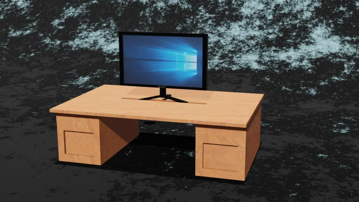 Designed on a 3D platform, this desk with a 27-inch monitor and wooden texture comes bundled in the following formats:-Blend