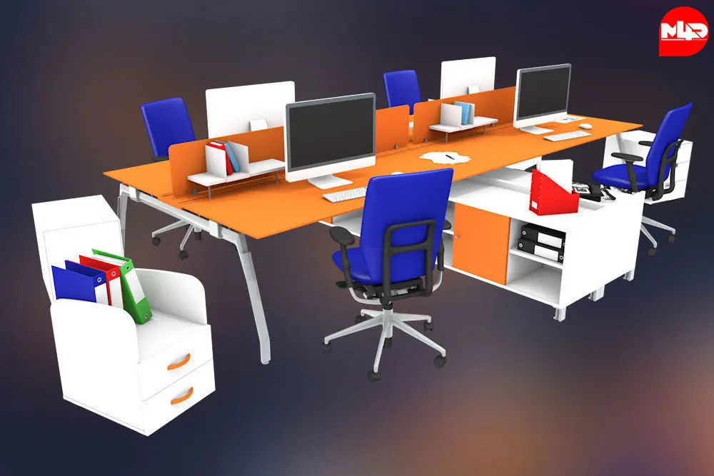 Pleasant color combination and scale scene attracts attention. Quick and easy customization allows you to use at all stages project. In any objects where needed style. Project features: The scene consists different objects. The basic format of C4D (MAXON Cinema 4D) but also includes 3Ds, OBJ (multi format), FBX (multi format) and Max Format,Texture included, Very easy to use ? just one click for edit project! Optimization scene supporting to render even on older computers. All Layers are grouped and sorted Completely set up rendering Modular structure No Plugins Required Support and update project Customization. Models : 5 Office Tables3 Small Tables1 File Glass Showcase7 ChairsPC, Monitor, CPU, Mac, Telephone, Laptop, PrinterBooks, Dairy, Pen, Papers, CupsWater Filter Jar and many more