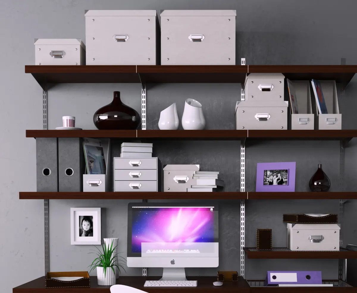 Office home with shelves and desk 3D model