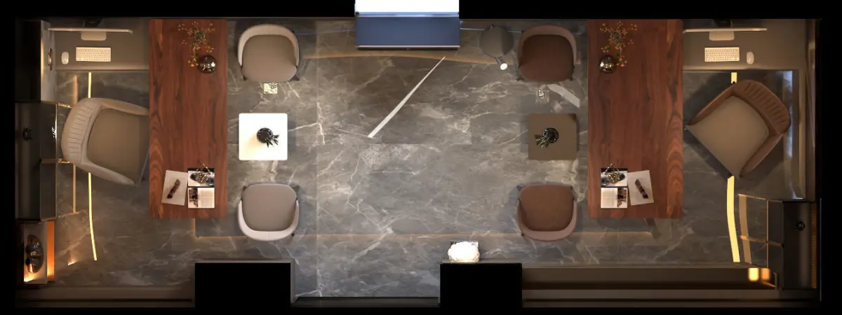 Luxury Design for office with oak wood strips ,marble and gold lines ( 3DSMAX 2019 modeling and V-RAY 5) , all the material and texture and light setting in zip. file ,