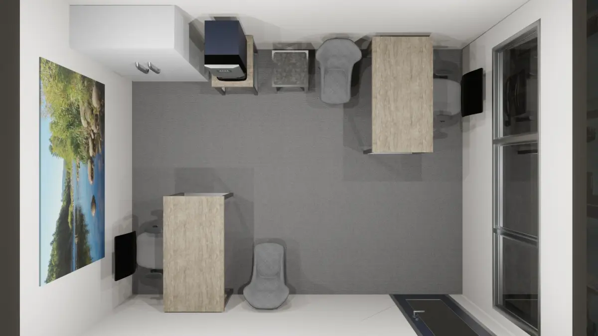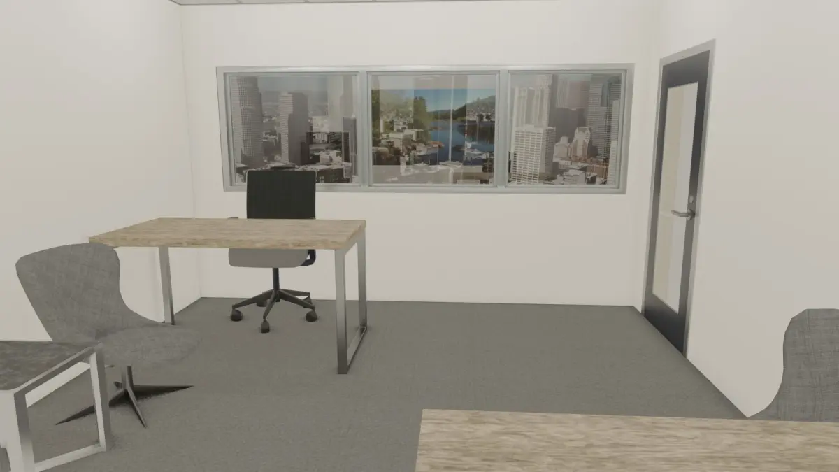 Office room includes: tables, chairs, armchair, cabinet, coffee machine, endtables, ceiling, walls, door, window and carpet floor. Each object has one UV map. Each object has 4 textures, these are: Base color, metallic, roughness and normal. All textures are 2K. Blender 2.91 is used for modelling and rendering (eevee)Verts: 20.152Tris: 38.708Tested in Cycles and Eevee.