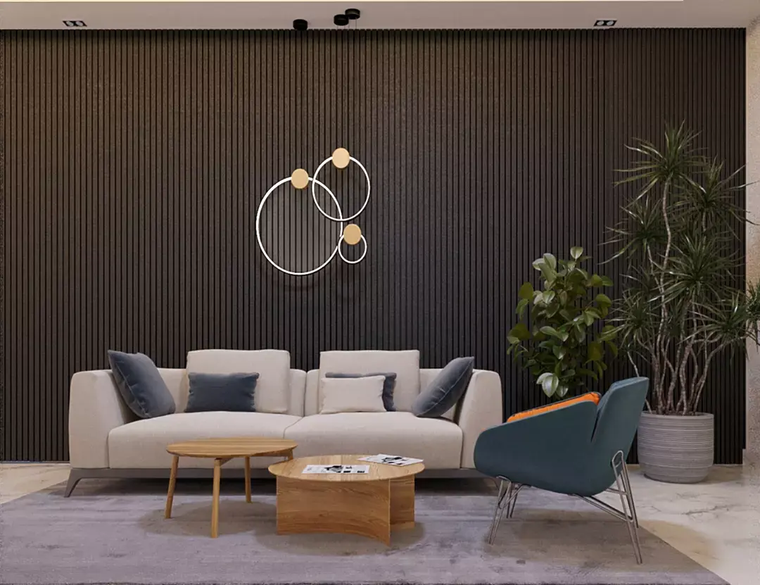 bold black accent wall added a contemporary touch, reflecting professionalism