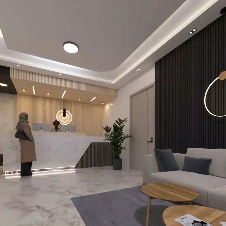 Transforming a child support consulting firm's reception area into an inviting lounge was a rewarding interior design project. The goal was to create a comfortable space that resonated with the brand identity and offered emotional support to high-end couples seeking counseling for their children.