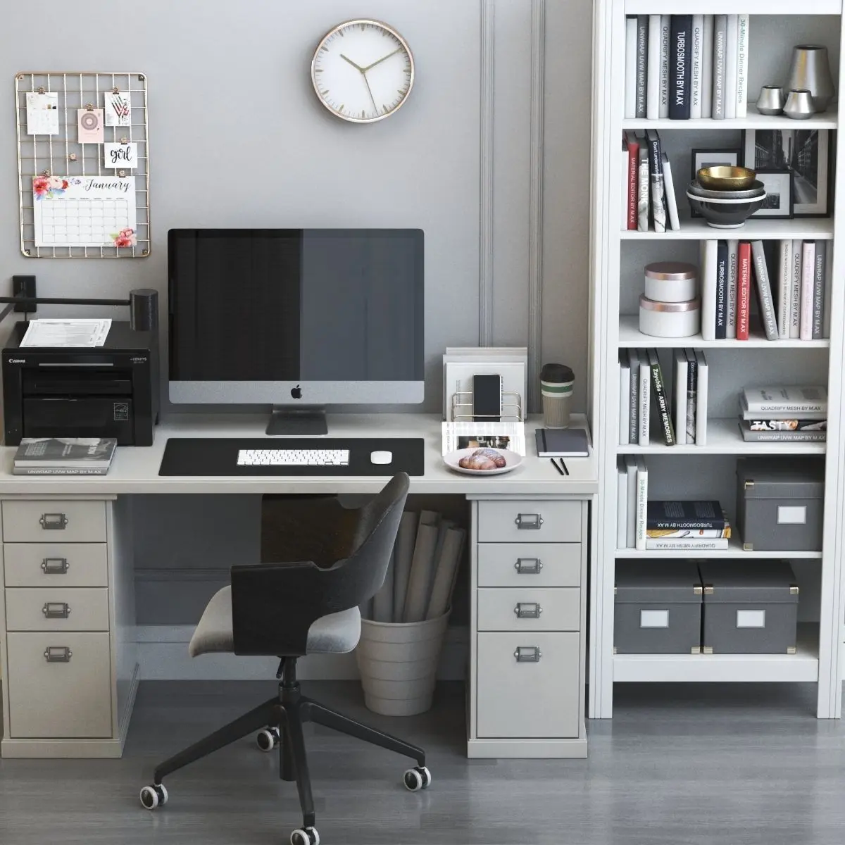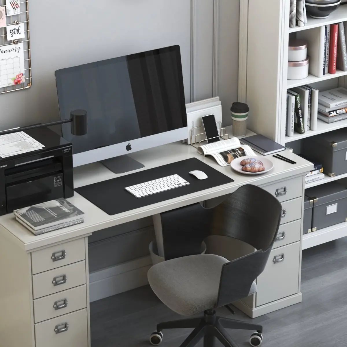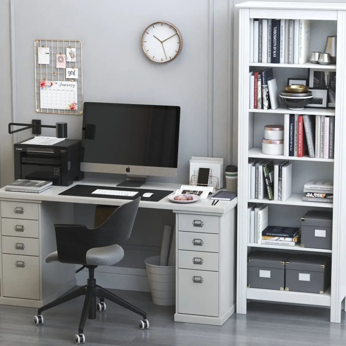 KLIMPEN Table, light gray gray, 150x75 cm. Can be placed anywhere in the room because the back is finished. Slot for a label on each drawer so you can easily keep things organized and find what you are looking for.