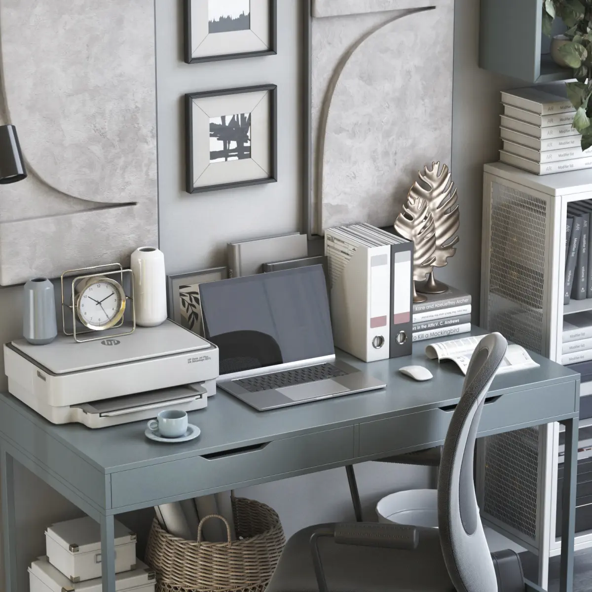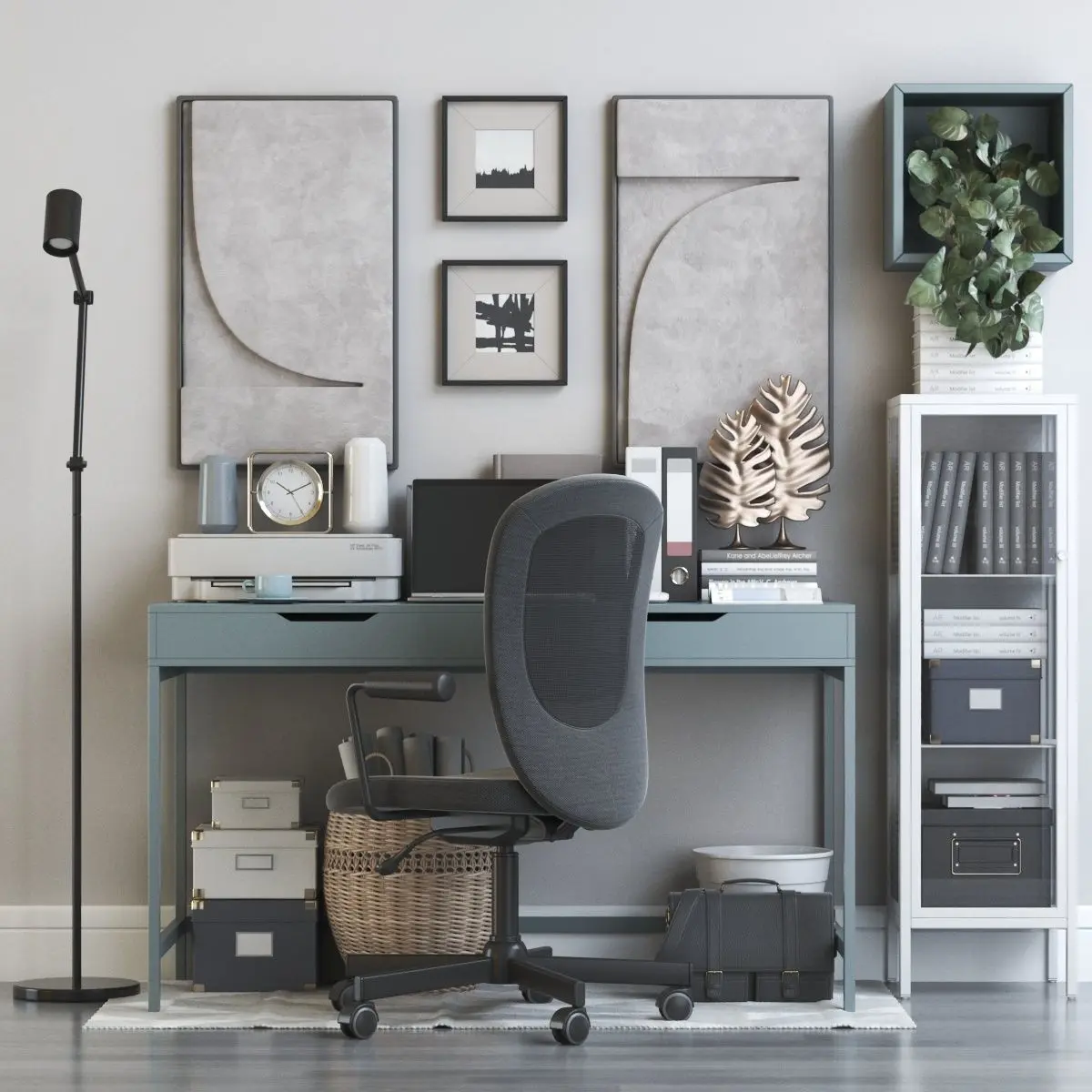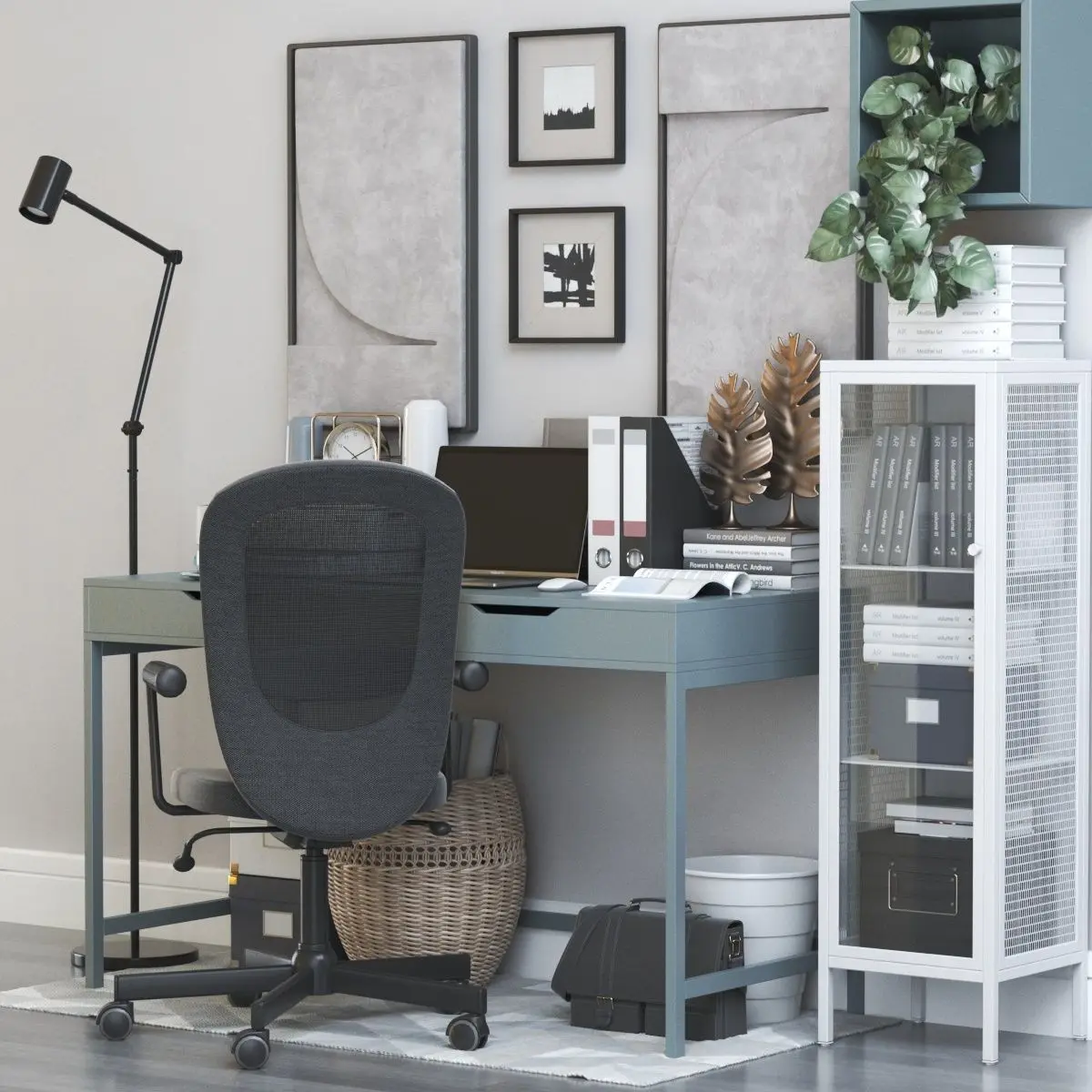 - ALEX Writing table, gray-turquoise 132x58 cm.A clean look that’s easy to like, coupled with a clever design that keeps messy cables out of sight.