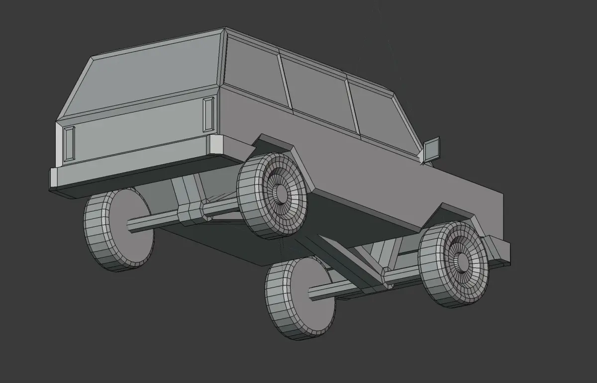 Lowpoly SUV with baked normals for extra detail. Wheels and axles are sepparate parts, which makes it easy to animated and use on games. Easy to add rig to control suspension elements, wheel rotation and spinning.Albedo, normal and roughness maps included. I can provide alternative colors if needed, just ask and I'll be happy to help!