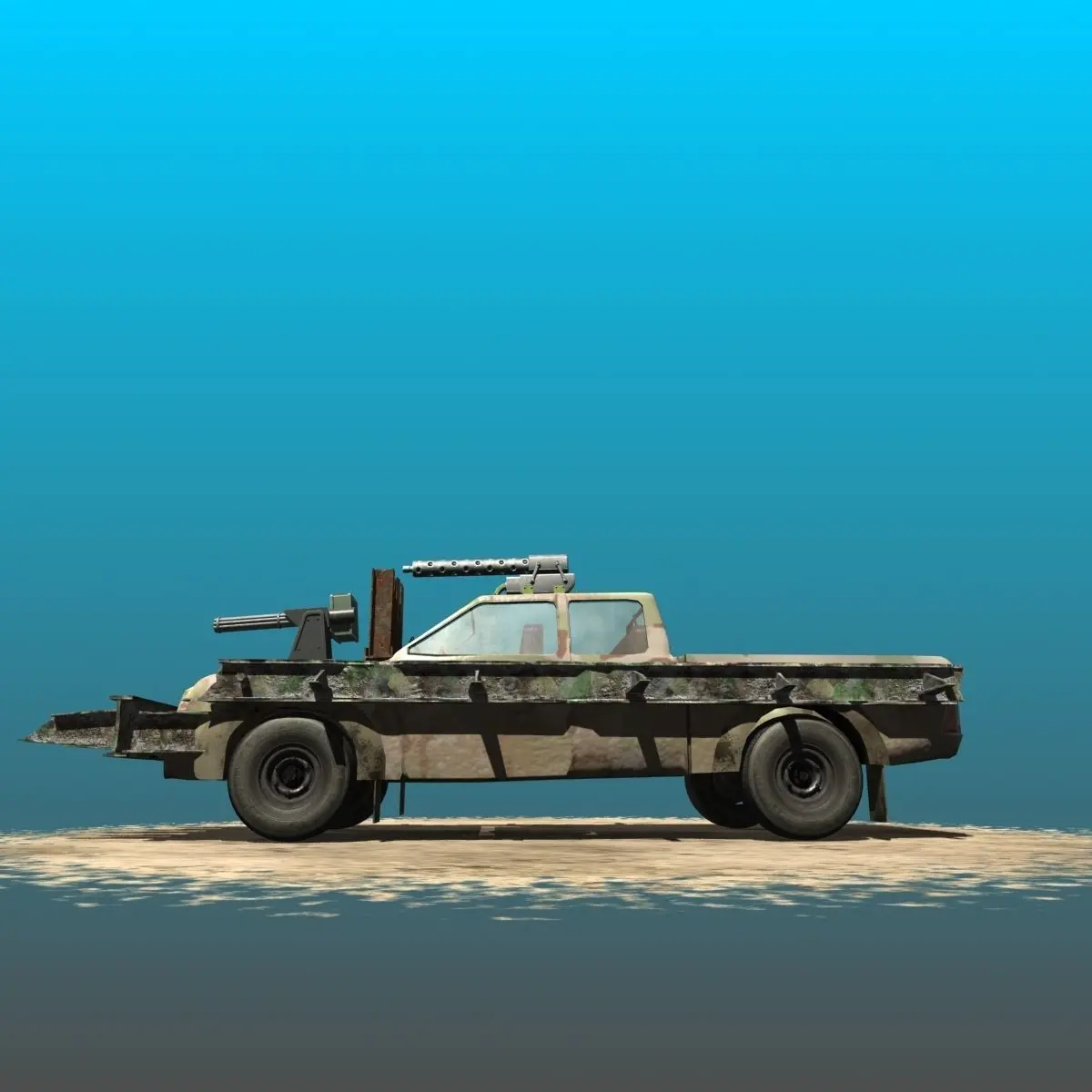 This is a mid poly off-road car with guns and accessories, Perfect for use in off-road, race, combat or even zombie games! Car have 3 guards and guns. Model is Fully materialised and textured, fully uvw-mapped. All textures(1024/2048) and materials are included. Textures include : colorsmoothnessmetalnessnormalspecularopasity. Modeled in 3d-studio Max 2016.