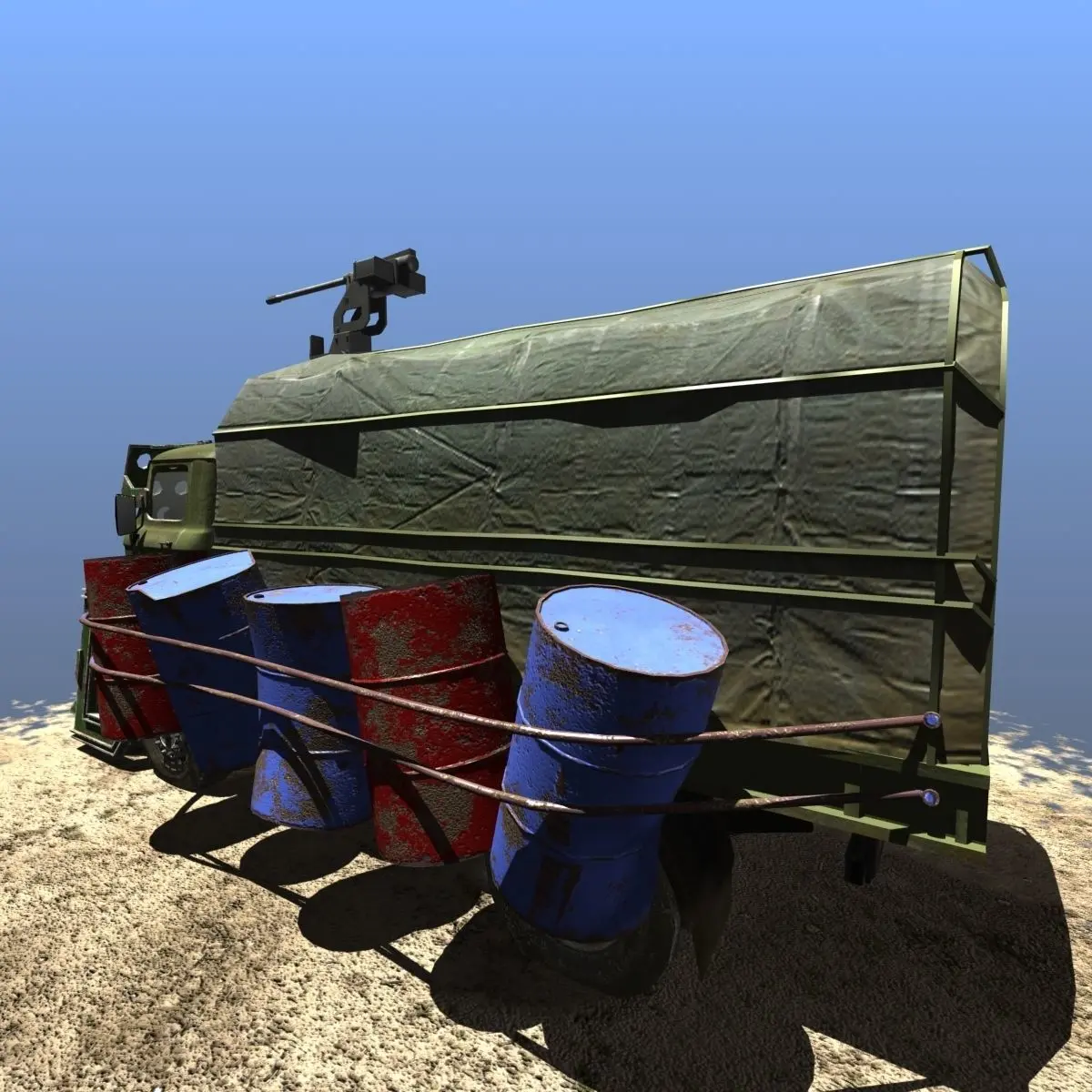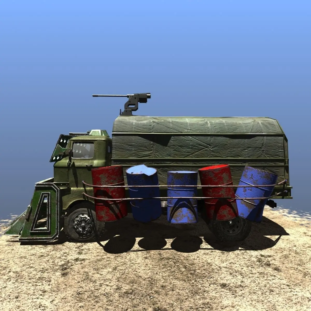 ** If you like this model, you might like this collection too: https://cgtrader.com/3d-model-collections/offroad-battle-cars **This is a mid poly off-road car with guns and accessories, Perfect for use in off-road, race, combat or even zombie games! Car have 3 guards and guns. Model is Fully materialised and textured, fully uvw-mapped. All textures(1024/2048) and materials are included. Textures include : colorsmoothnessmetalnessnormalspecularopasity. Modeled in 3d-studio Max 2016.