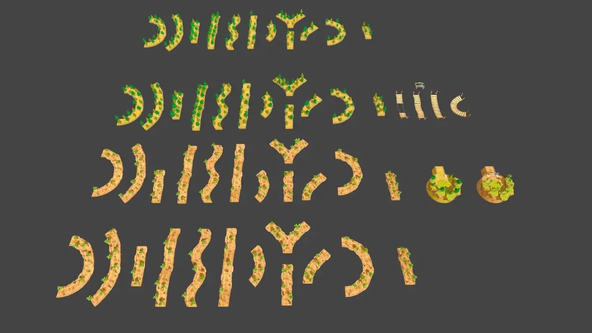 Each track piece and prop consists of assigned materials and textures