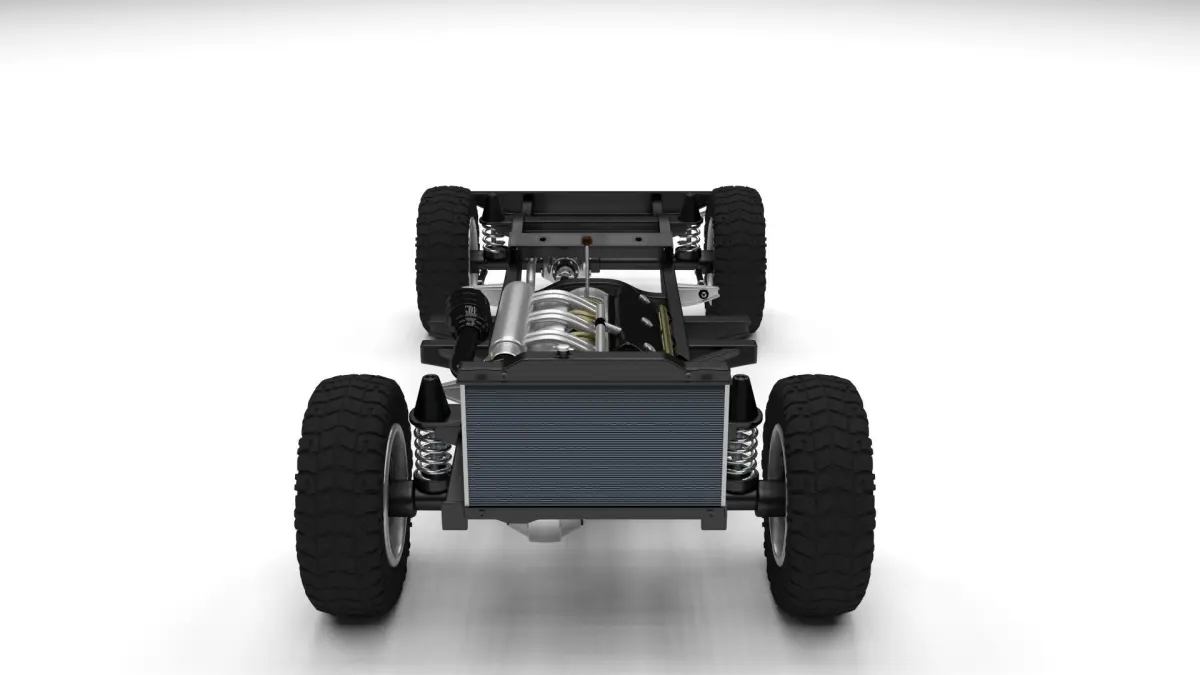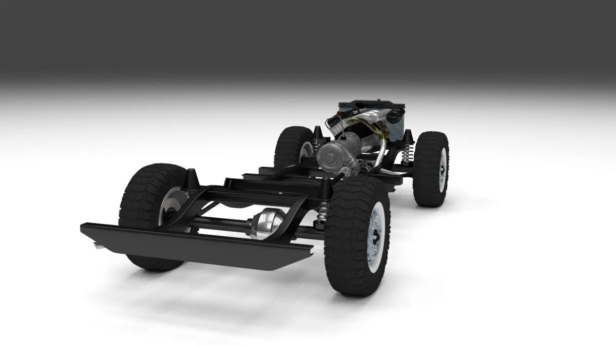 A very accurate model of an Offroad Car Chassis. The chassis is fully modeled, with engine, radiator, differential, axles, drive axles, suspension, brakes and exhaust.