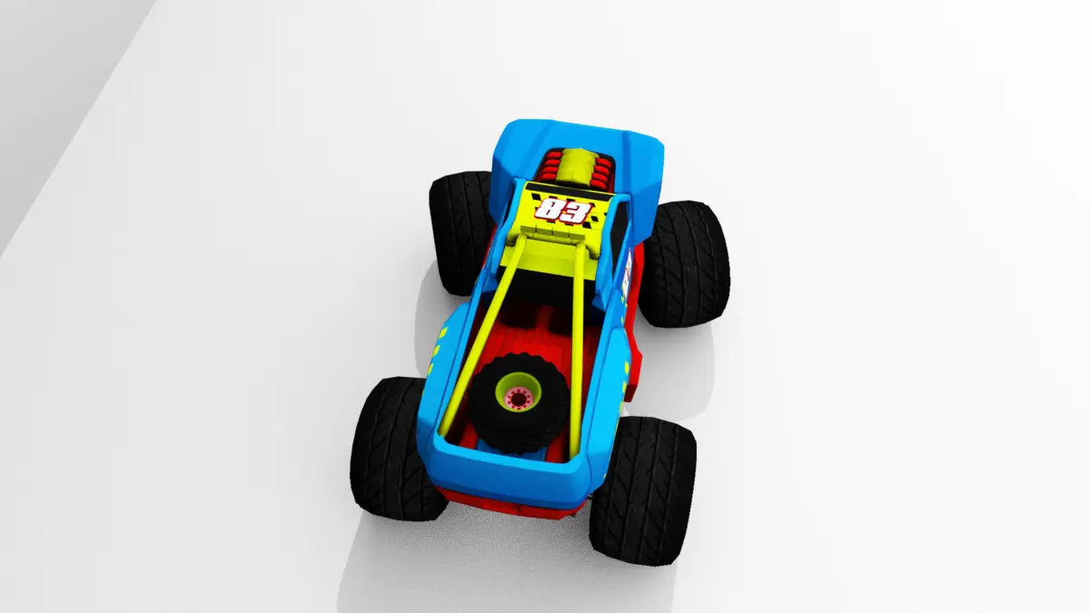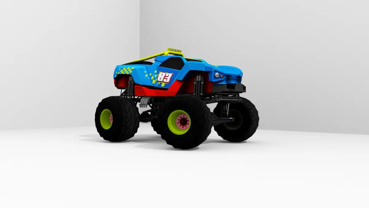 Wheels have spindle nodes for easy animation. Monster Truck have logical hierarchy and naming.