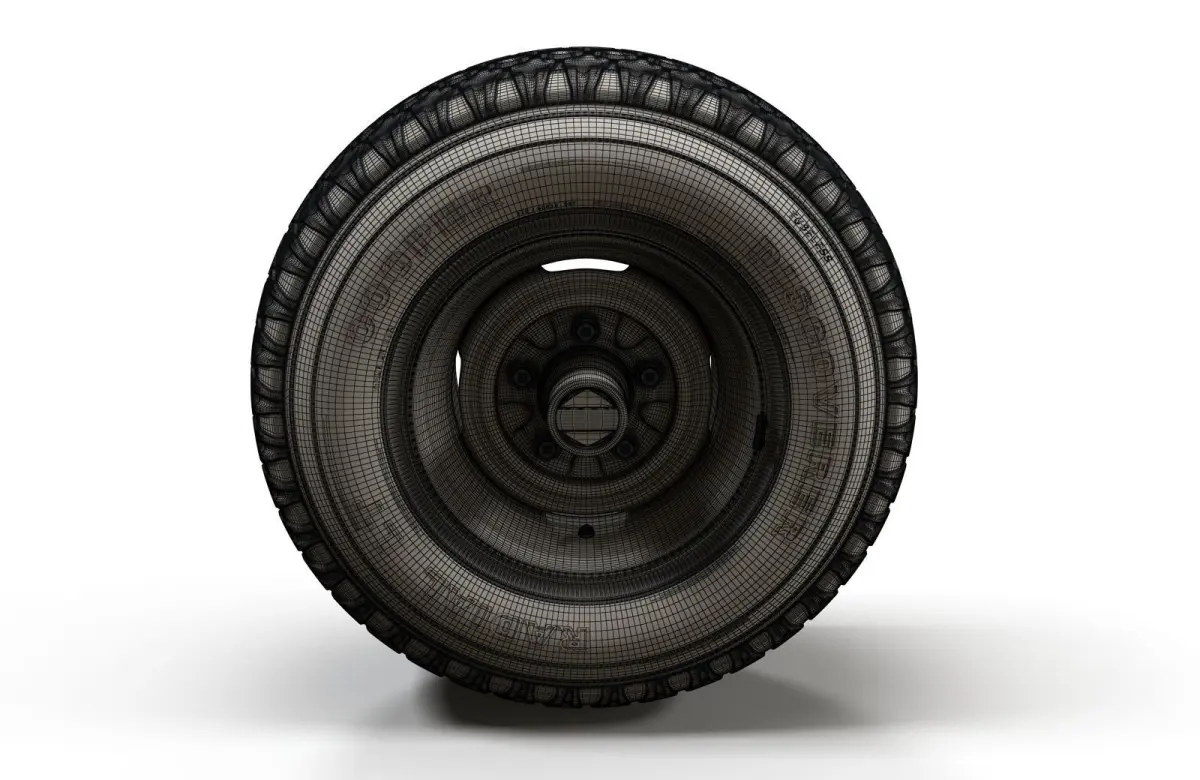 Highpoly truckr wheel model. High accuracy rim and tire with thread and side text. Created with 3ds Max 2017 and saved as 3ds Max 2014.