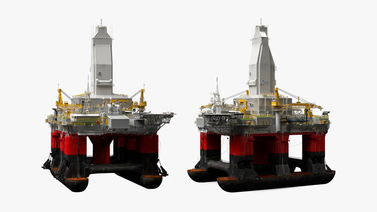 This model represents a massive, semi-submersible platform that sits on the ocean surface, supported by large submerged pontoons. The structure is equipped with drilling equipment, living quarters, and other essential facilities for offshore operations. It is engineered for stability in rough seas, with the ability to support heavy machinery and crew for long-term exploration and extraction tasks.