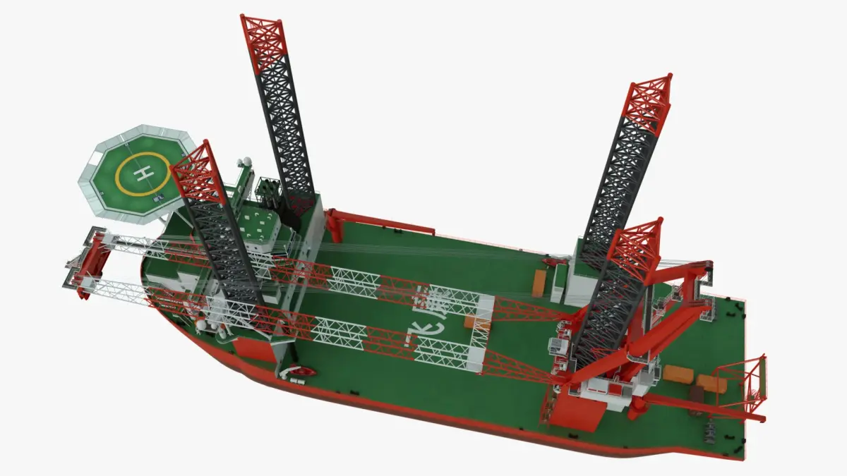 High-quality 3D model of a generic Offshore Wind Installation Vessel (WIV) designed for visualizations, engineering previews, and simulation environments. The model includes a detailed hull, large deck crane, jack-up legs, helideck, accommodation superstructure, and realistic deck equipment. Optimized topology and clean materials make it ideal for renders, animations, and real-time applications.