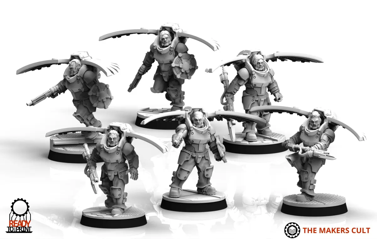 The Avus Squad is a fully modular 3d printable kit that comes with legs, basetoppers, alternate arms, a selection of heads as well as a varitey of weapons and accessories. Parts are split into Leg, torso, arms, shoulderpads and head and are all crss compatible with both our black knights and tempest legion lines of miniatures.
