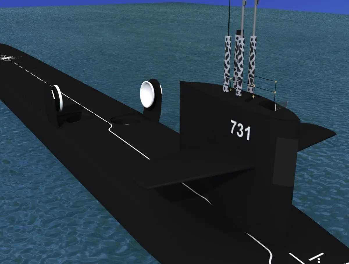 This model is very detailed, built near to scale and comes as shown with all textures and materials. It includes animateable propeller, opening launch tube hatches, hatches, retractable periscopes, antenna and handrails. The torpedo tube doors at the front of the ship can also be opened. For the re-designated SSGN boats, I have also installed 7 smaller launch tubes into each of the missile silos. Each of the 7 has its own sub hatch covering the interior launch tube.