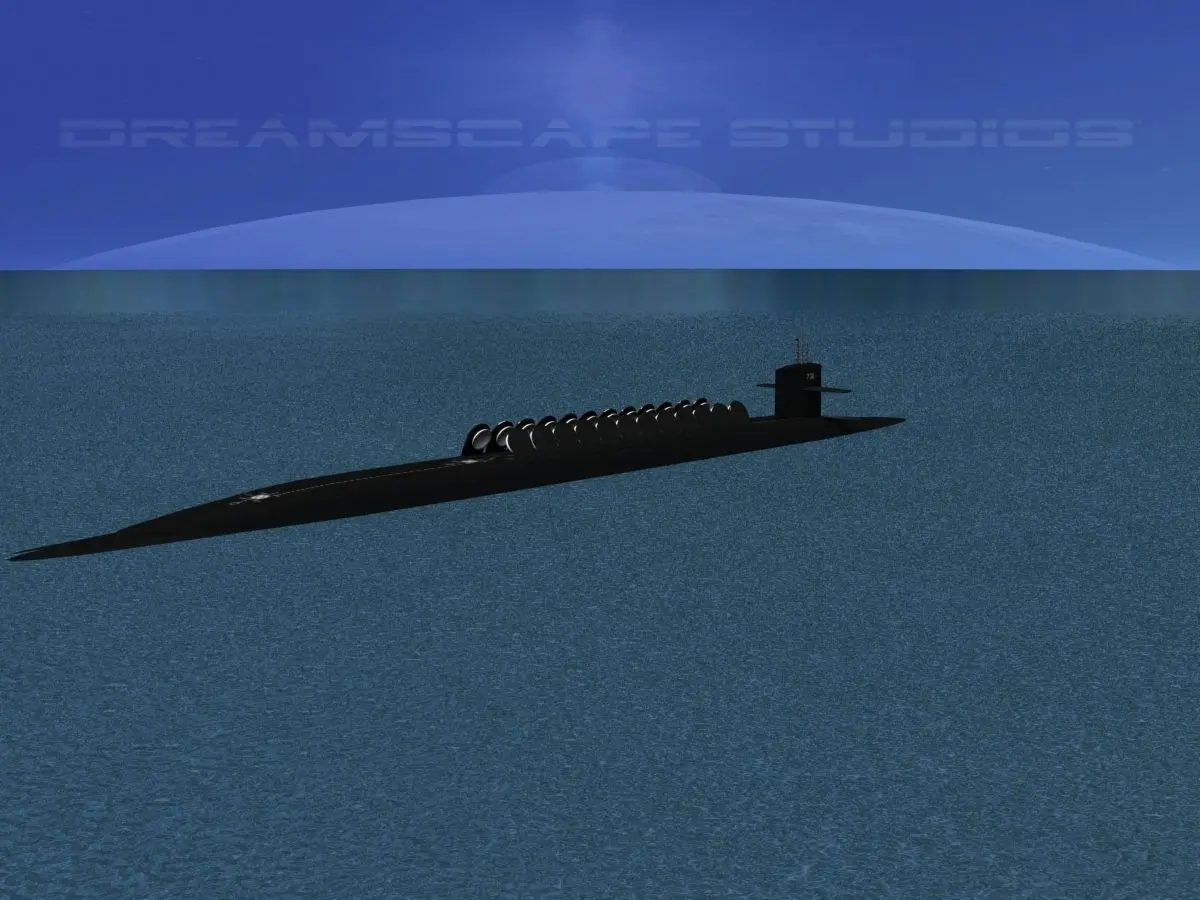 This model is very detailed, built near to scale and comes as shown with all textures and materials. It includes animateable propeller, opening launch tube hatches, hatches, retractable periscopes, antenna and handrails. The torpedo tube doors at the front of the ship can also be opened. For the re-designated SSGN boats, I have also installed 7 smaller launch tubes into each of the missile silos. Each of the 7 has its own sub hatch covering the interior launch tube.