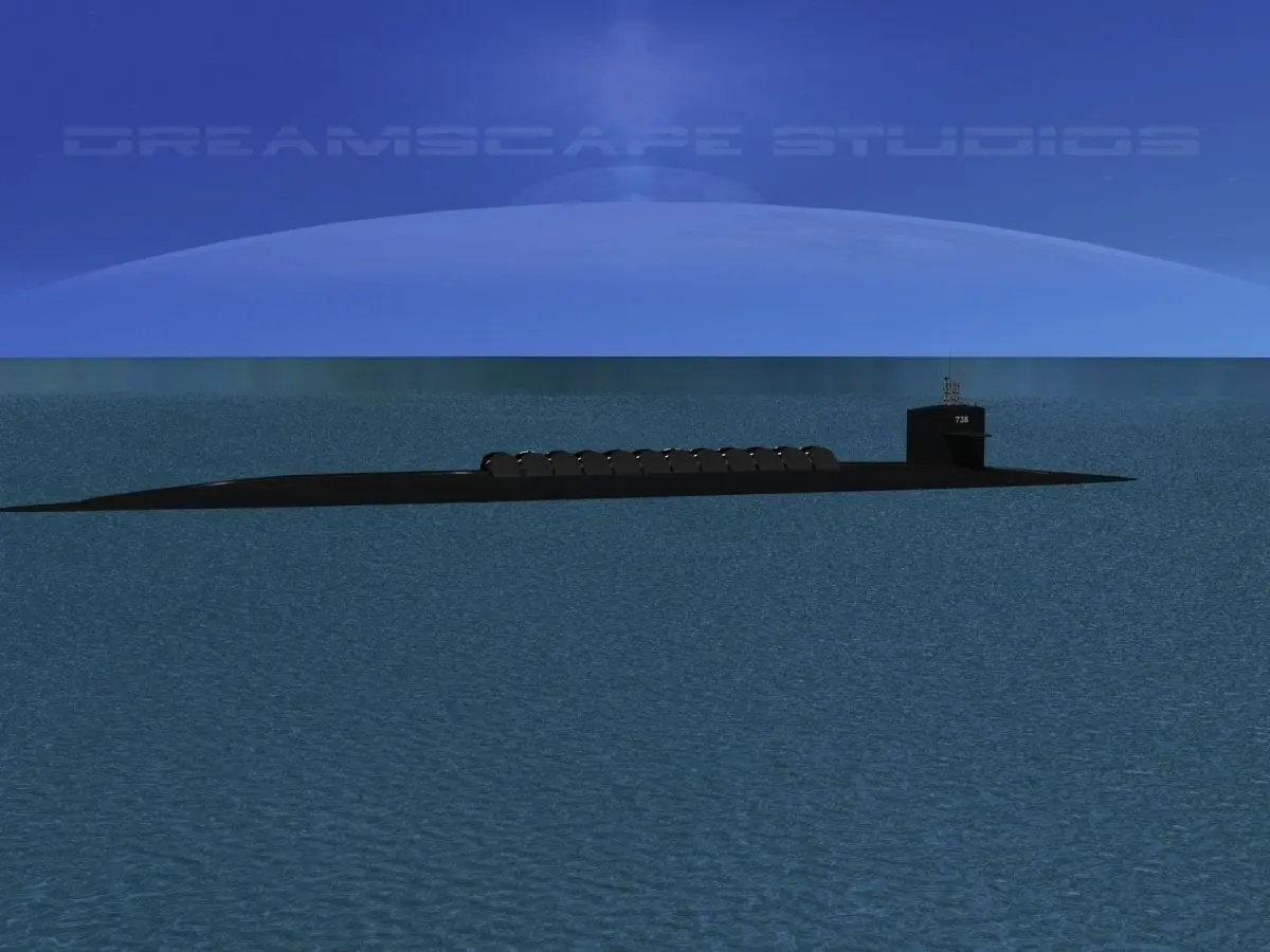 This model is very detailed, built near to scale and comes as shown with all textures and materials. It includes animateable propeller, opening launch tube hatches, hatches, retractable periscopes, antenna and handrails. The torpedo tube doors at the front of the ship can also be opened. For the re-designated SSGN boats, I have also installed 7 smaller launch tubes into each of the missile silos. Each of the 7 has its own sub hatch covering the interior launch tube.