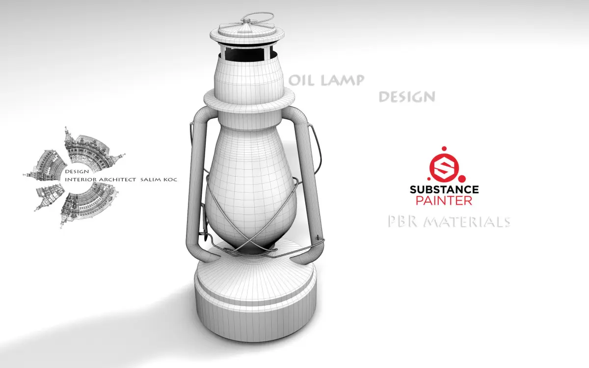 eski tarz gaz lambası tasarımı.Cam ve fitil ayrı yapılmıştır.Gözde ve teller ayrı parçalar olup substance mataryal yapılmıştır.