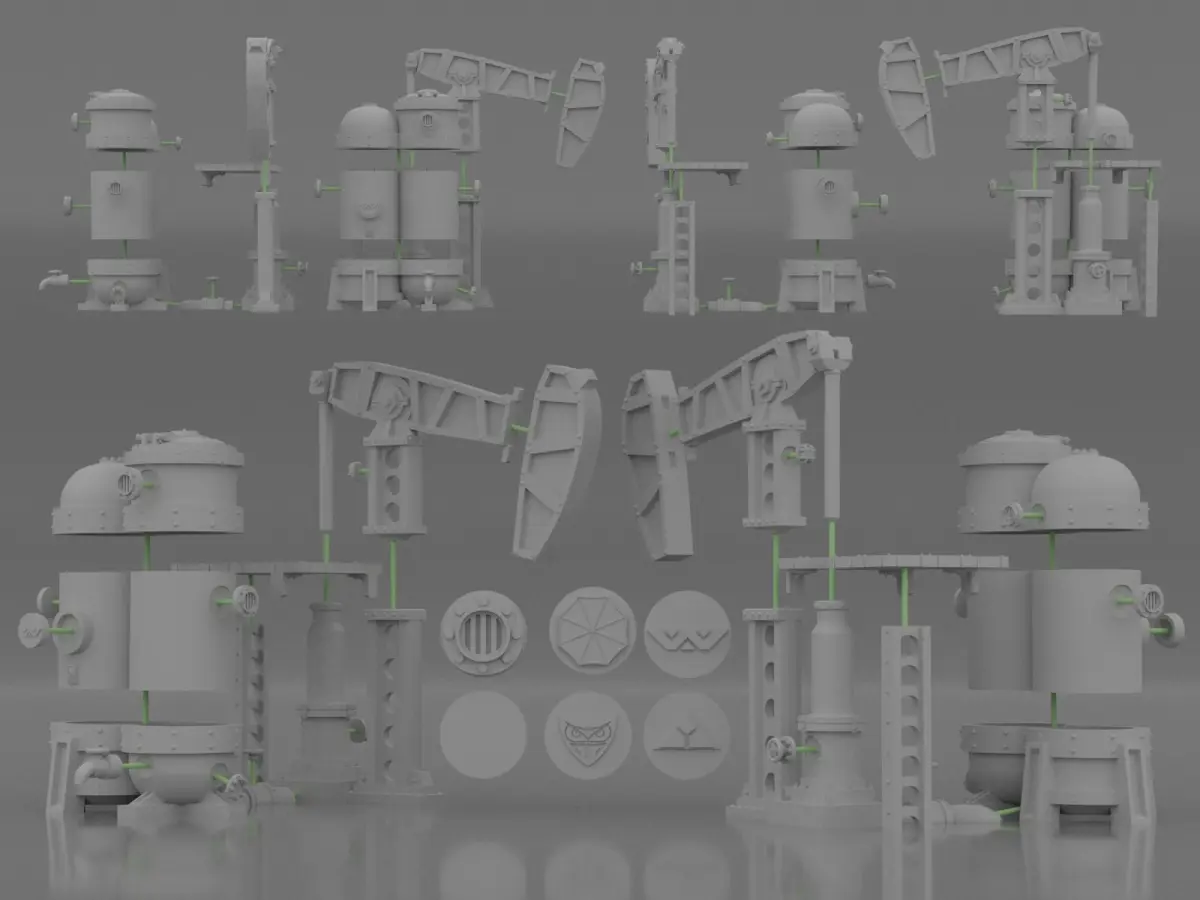 dieselpunk oil pump terrain for miniature wargaming.Model is cut to optimize resin/fdm printing.Same size as orky kill team pump.