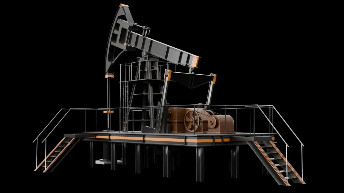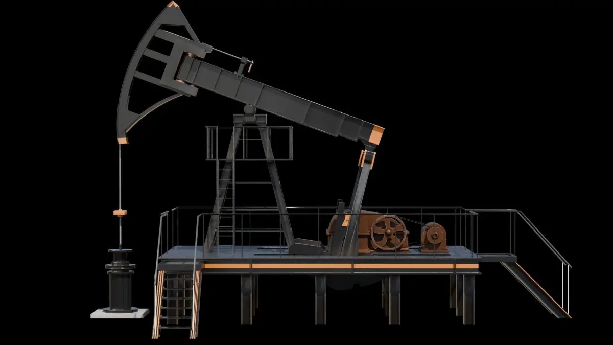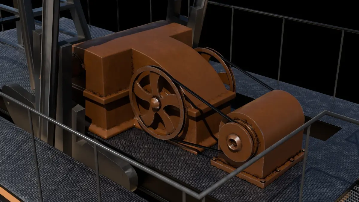 Oil pumpjack model built in Blender 4.2 and rendered with Cycles, with procedural materials, Game-Ready.