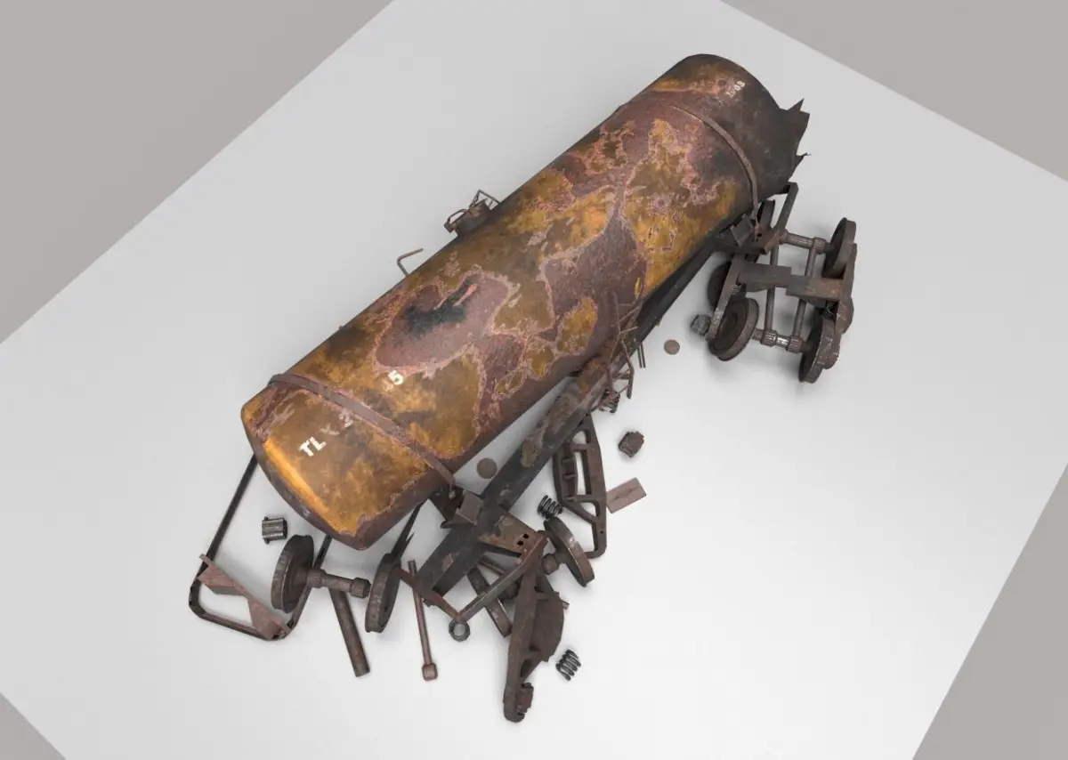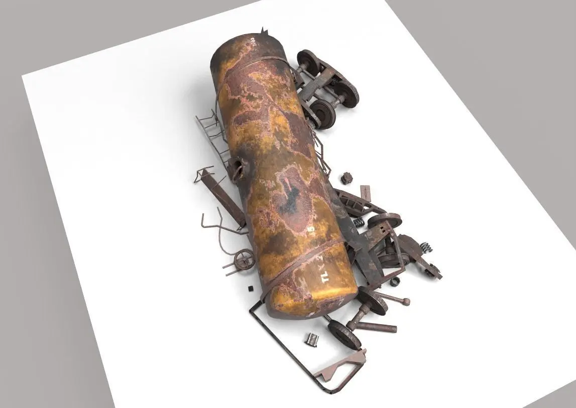 Model of Oil Railcar Crash. Model is very realistic.It has 4 PBR material.Maps are diffuse-specular-glossiness-height and normal. Model's textures has two sizes; 4096x4096-2048x2048. All maps are PNG formats and unwrapped-non-overlapping.