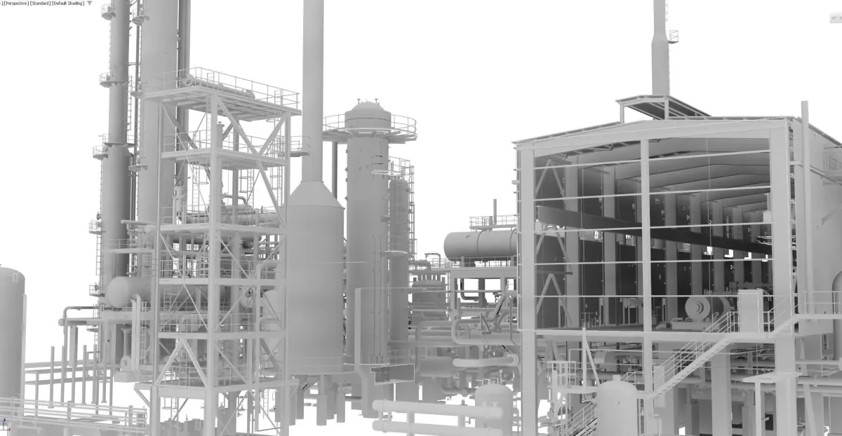 -Very detailed and real oil refinery plant-Vray & Corona Render-Hdr Sky-obj and fbx format -Low poly model. (290 MB)