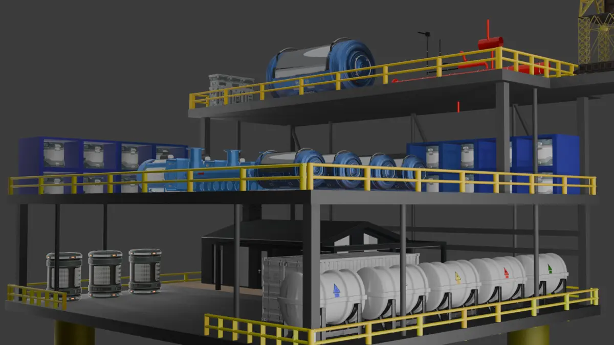 Fully textured oil platformPack Low-poly 3D modelContains cranes, barrles, pipes, tankers