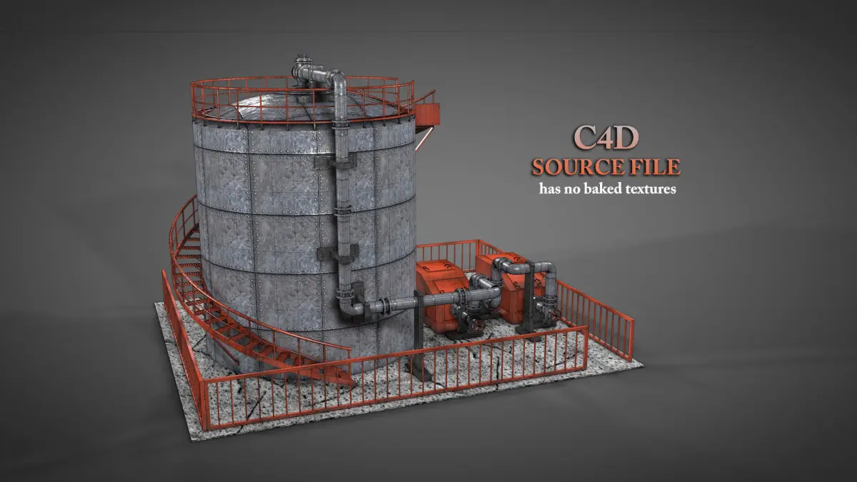 oilstorage(SOURCE).C4D is the main source file for Cinema 4D users. 119 objects are placed in individual groups. All of them has good materials. No baked files.